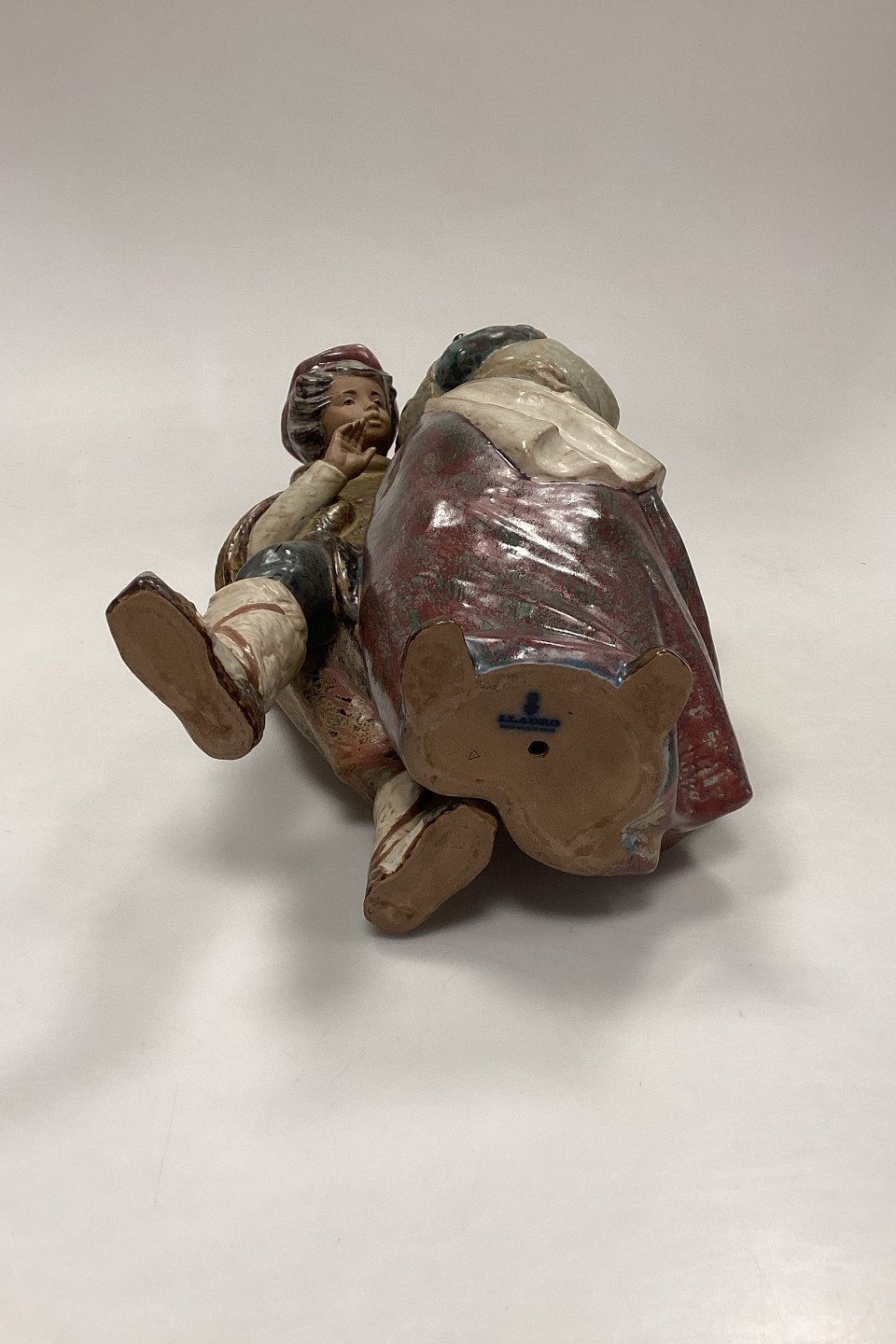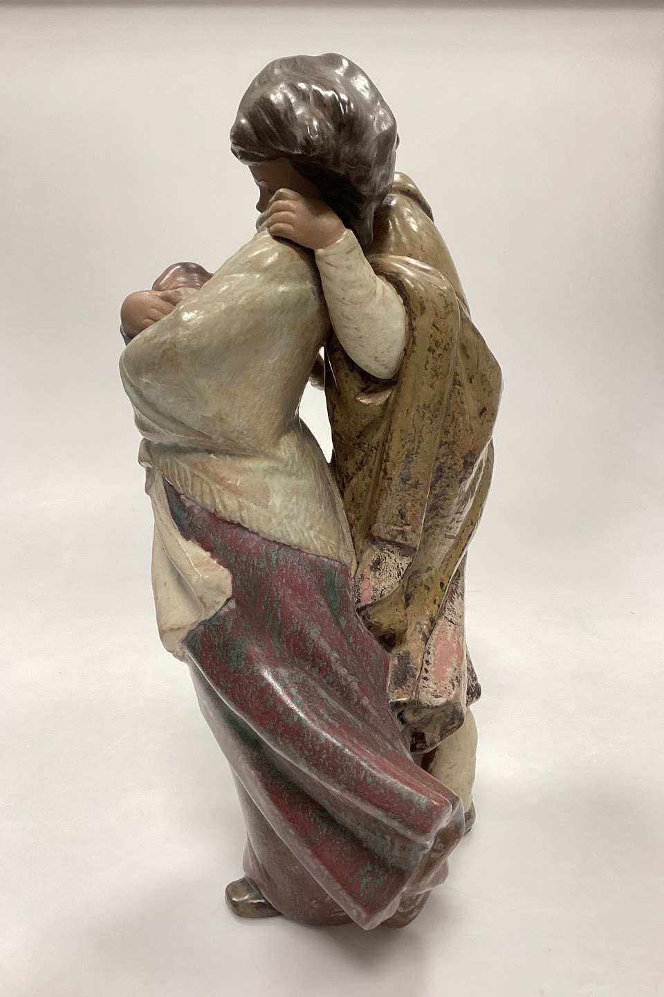 Lladro Stoneware Figurine of Girl and Boy with Dog - Facing the Wind. Designed by Juan Huerta, Spain.Measures 36 cm / 14.17 in.