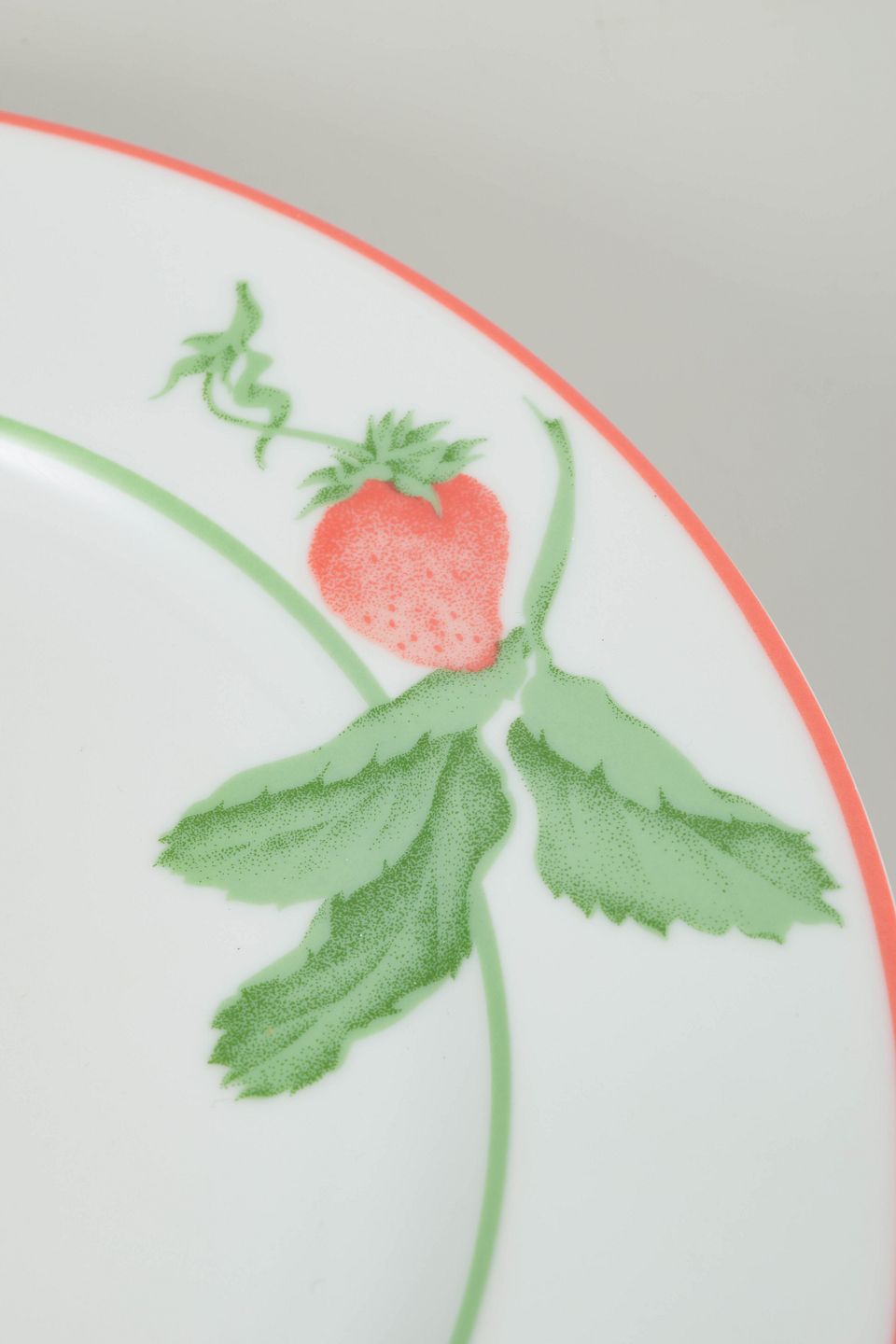 Limoges porcelain is renowned for its fine quality and long tradition of decorated tableware. During the 1980s, fruit and botanical motifs became popular as a fresh and decorative element for contemporary table settings. The Fraise series is characteristic of the period, with its naturalistic strawberry motif and coloured rims creating a light and classic appearance.