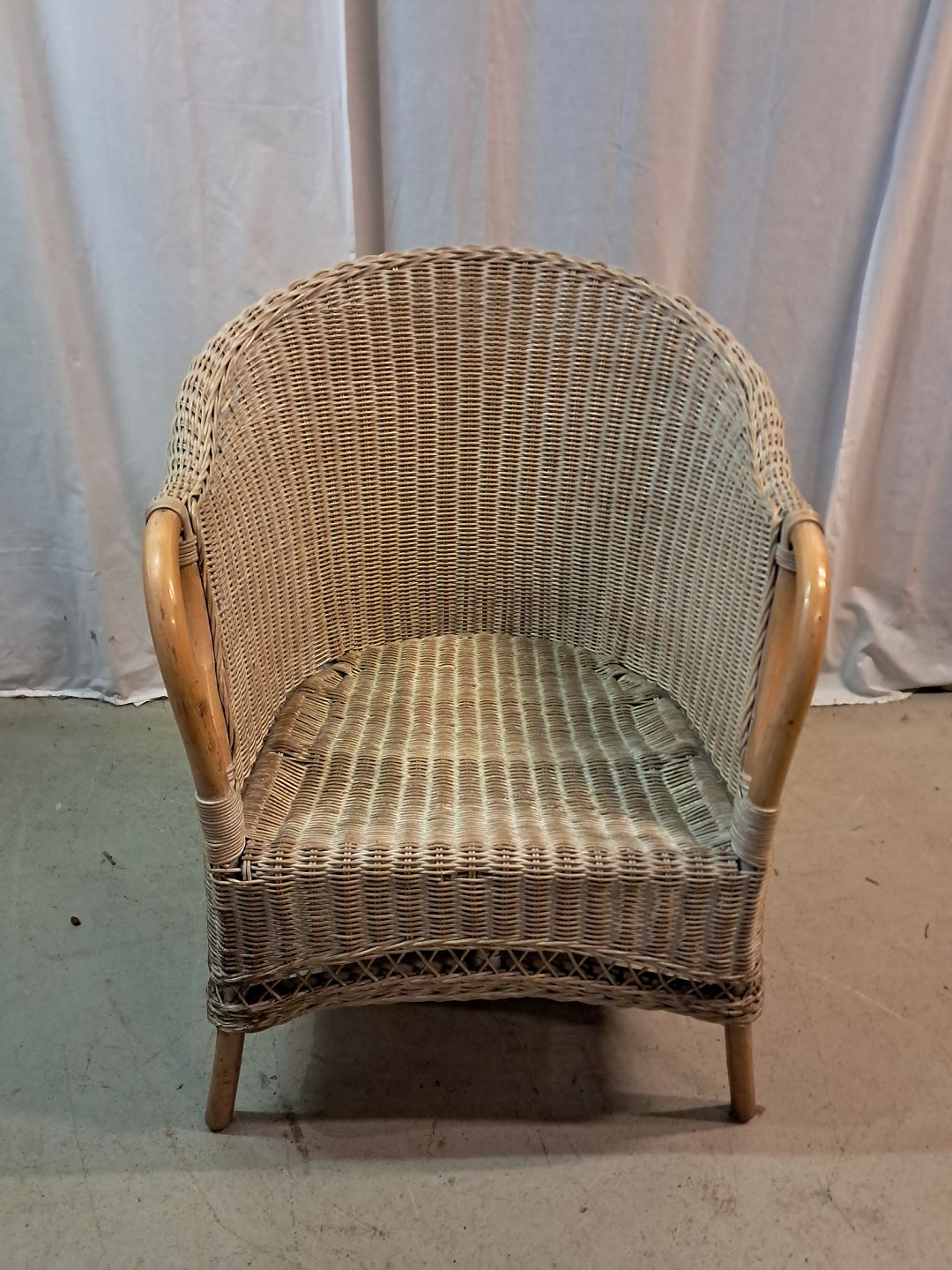 Stol i bambus og flet, fra 2000erne.Den har brugsspor.