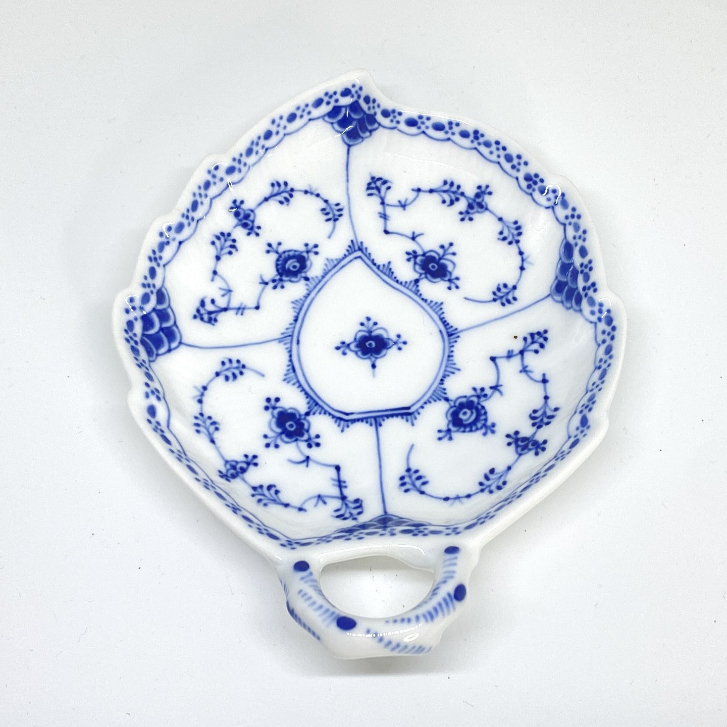 Royal Copenhagen/Kgl Blue Fluted half-lace leaf-shaped plate with fixed handle. Decoration number 1/547. 2nd grade. Dimensions: 18.5 x 14.5 cm.Item number: Kgl 162