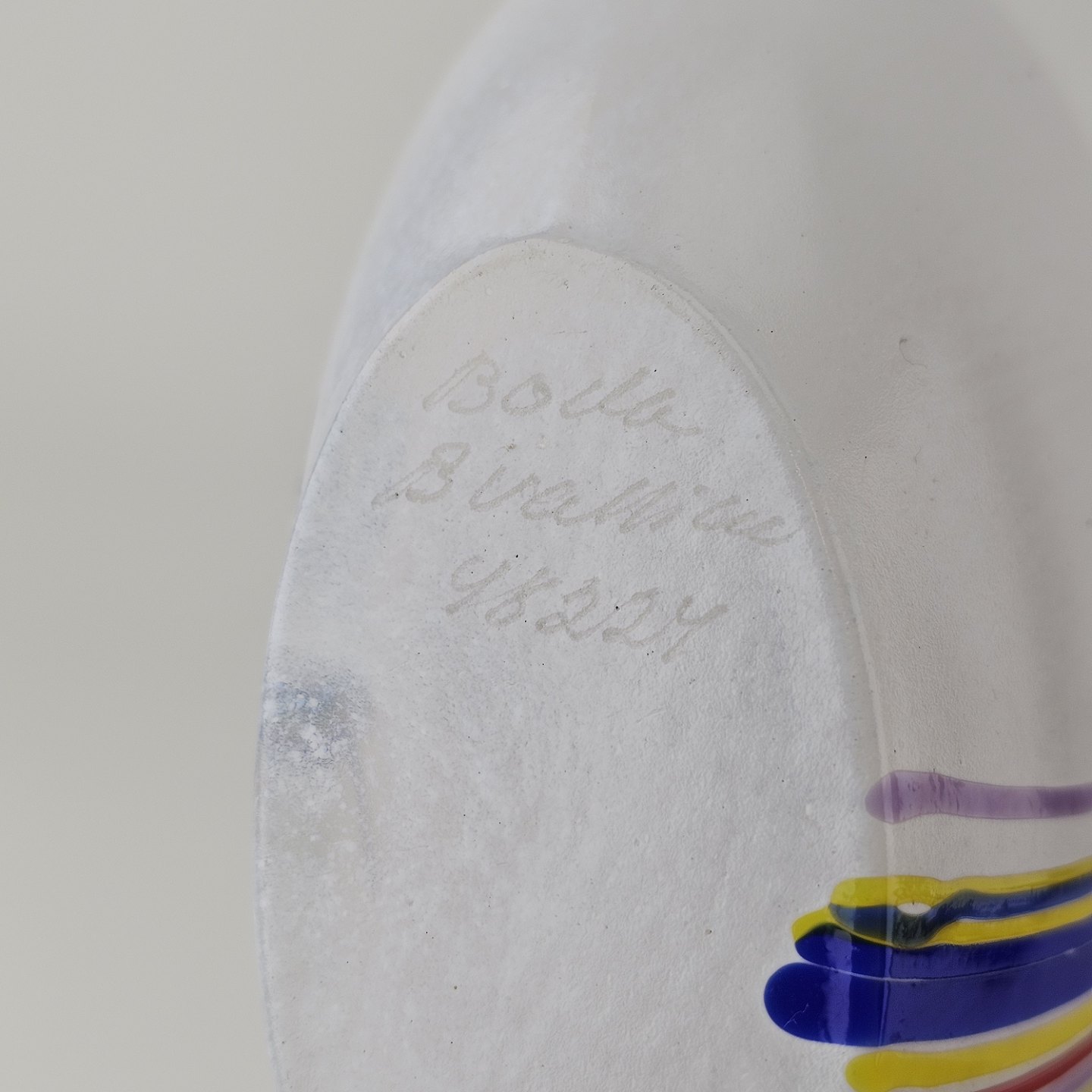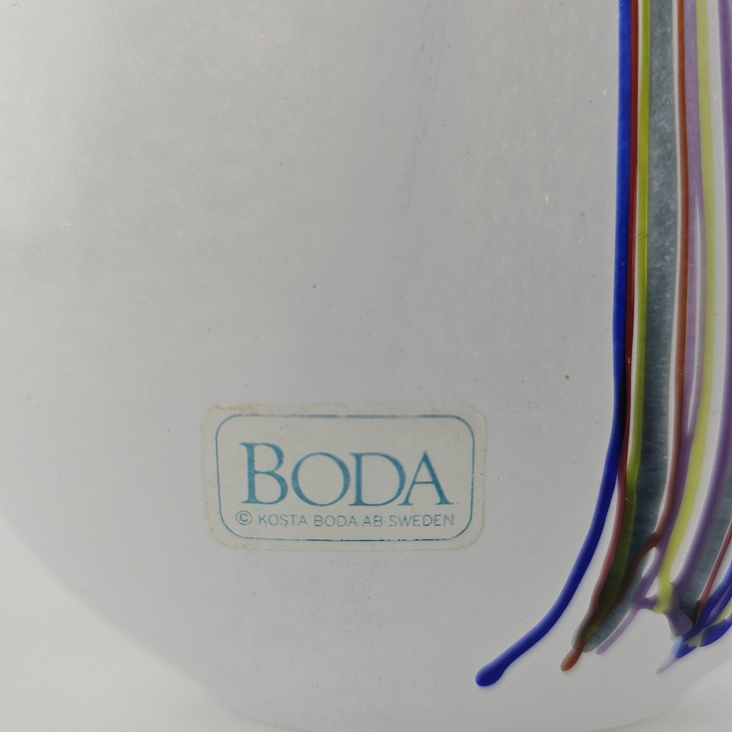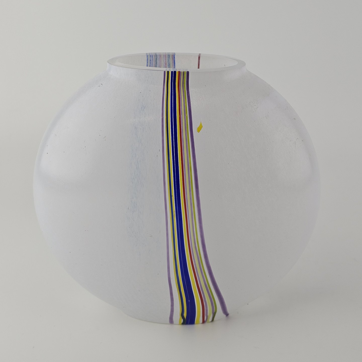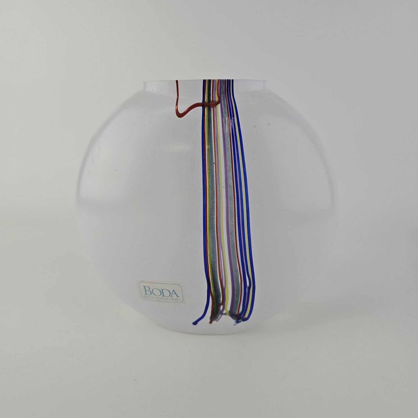 Rund vase i glas med dekoration af linjer og streger i flere farverNr. 48224