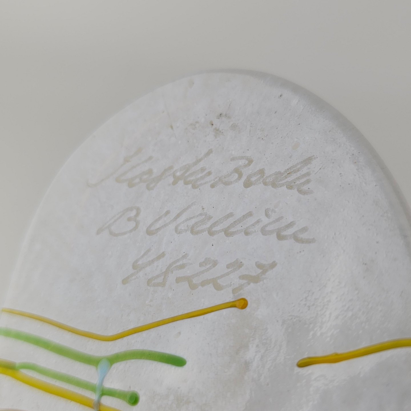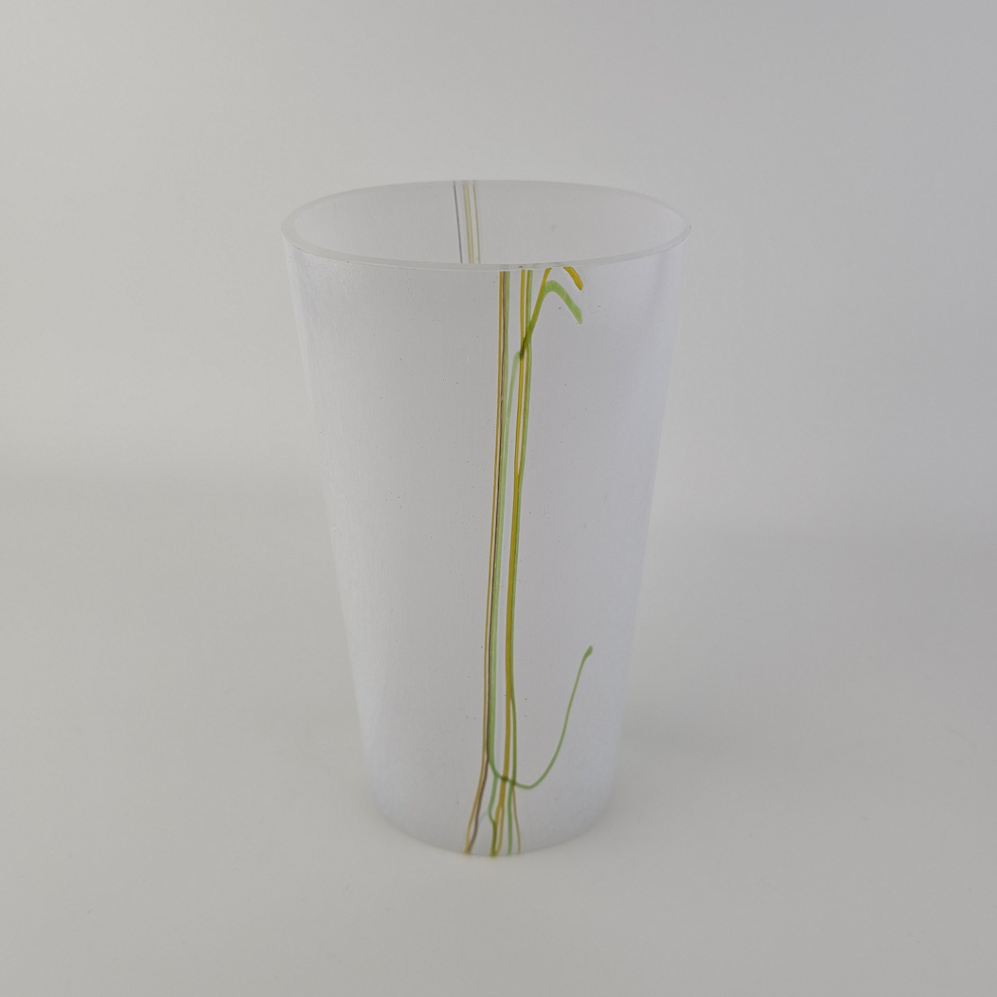 Vase i glas med dekoration af linjer og streger i flere farverNr. 48227