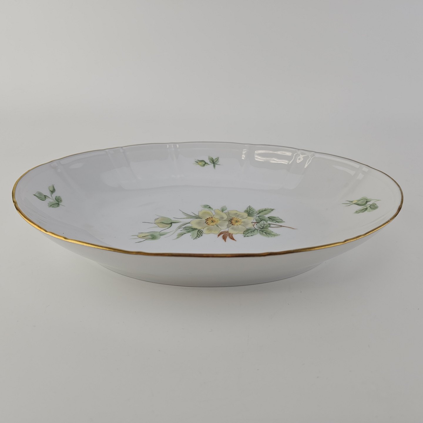 Ovalt fad i porcelæn fra stellet Klitrose. Nr. 314Producent Bing & Grøndahl