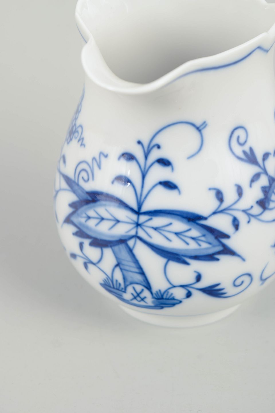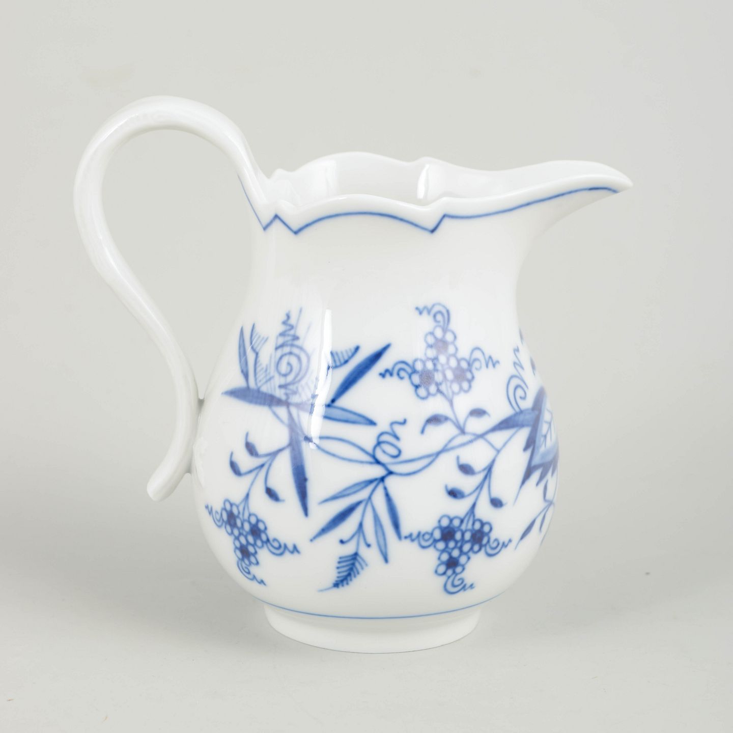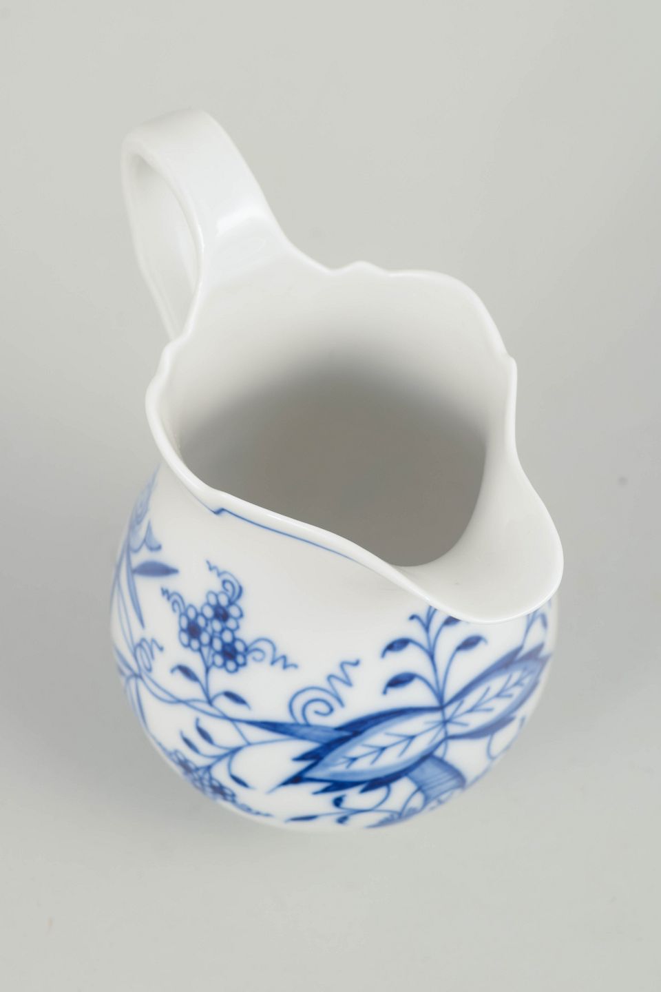 Meissen, Blue Onion creamer.Classic porcelain creamer decorated in underglaze blue with the Blue Onion pattern and a shaped rim.