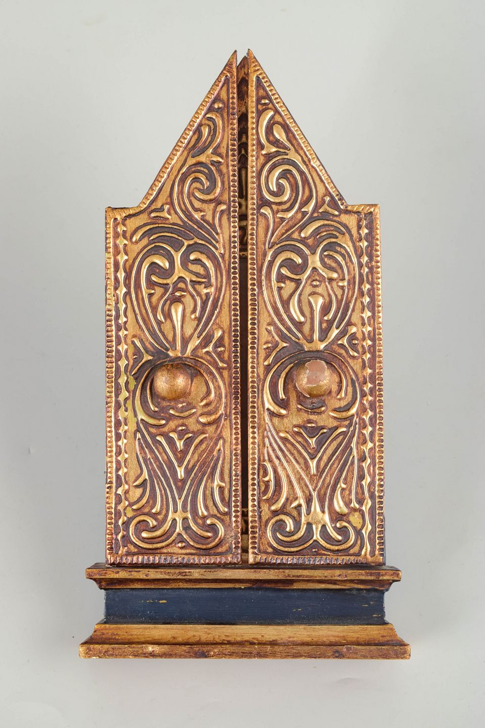 19th-century Russian Orthodox icons were often made as portable folding triptychs, with protective wings that suited private devotion and travel. The combination of devotional symbolism, frontal figures, and decorative gilding is characteristic of the tradition, giving the piece a distinct liturgical and cultural-historical presence.