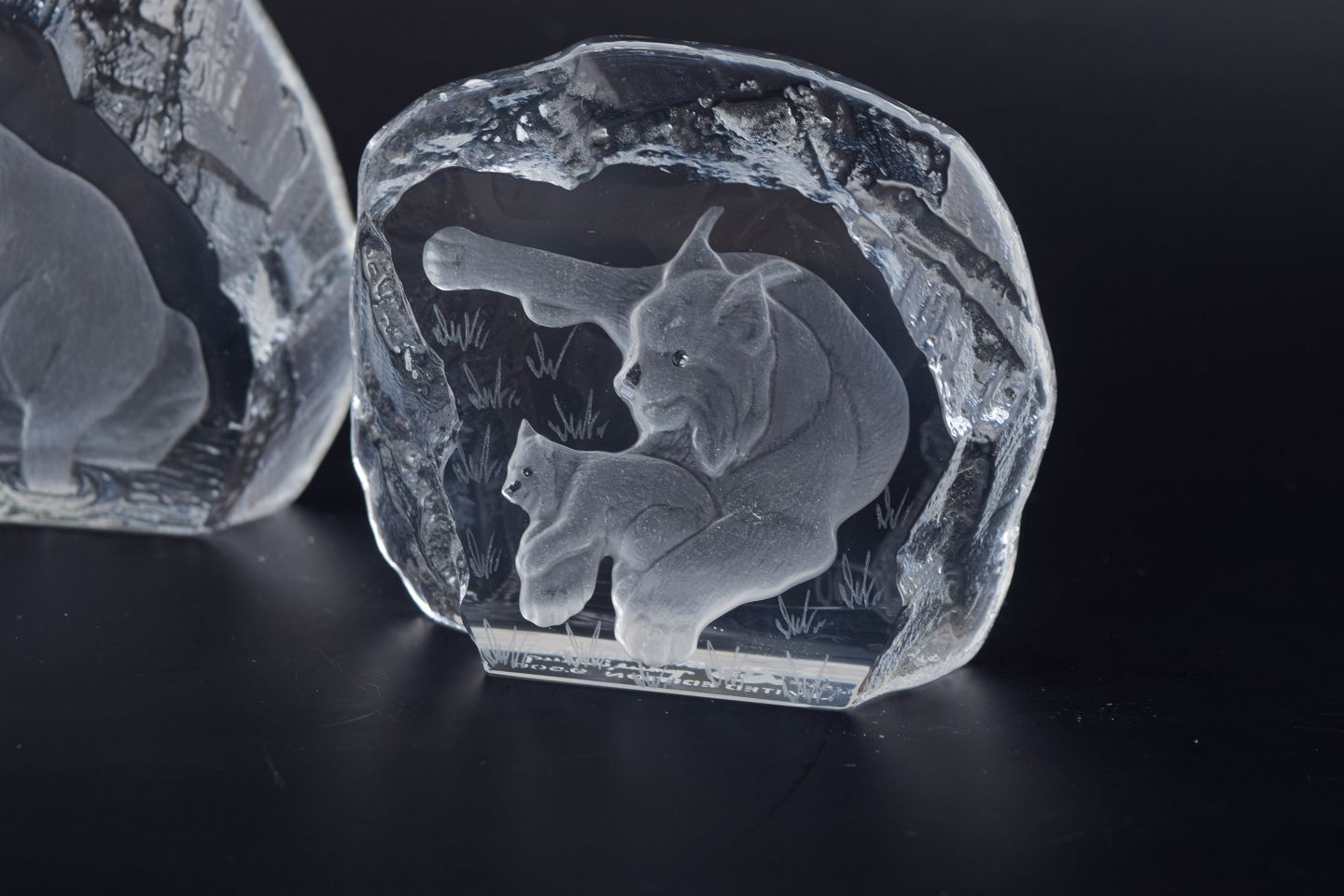 Paul Isling for Svenskt Glas, WWF figures, set of 3.Sculptural art glass objects with engraved animal motifs, executed in clear glass and issued as a limited edition in collaboration with WWF.