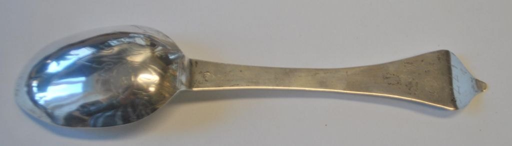 Christian Vilhelm Schlegel (1719 - 17??) Fredericia, Denmark. Rococo rat tail silver spoon. With rococo decorations and engravings. Stamped. L.: 19.5 cm. Weight.: 40 grams.Item number: 28851