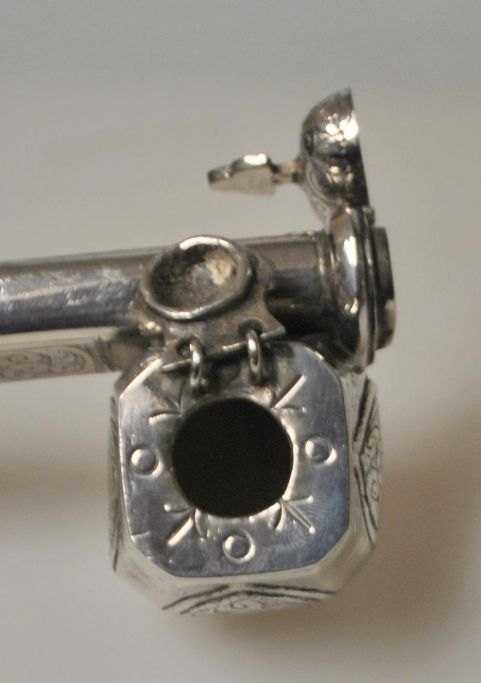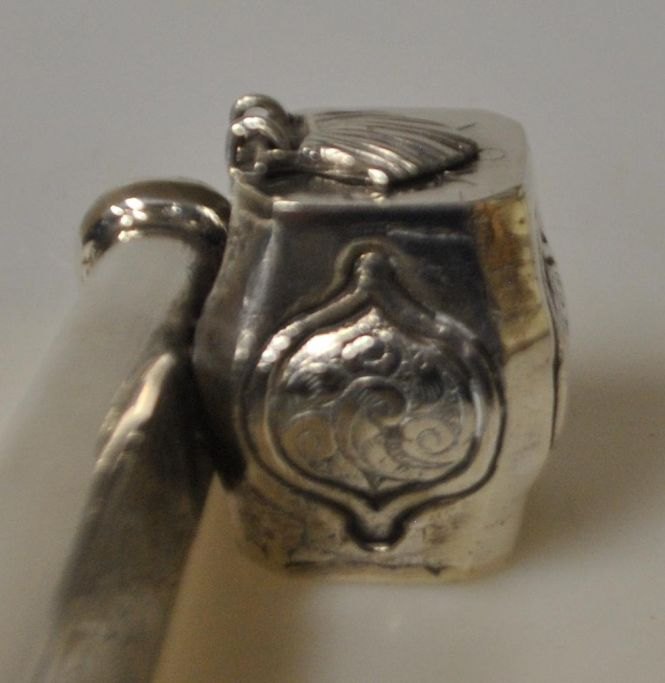 Indian travel writing set in silver, 20th century. 800/1000 silver. Stamped: LAMSA. With numerous decorations. L.: 23 cm. Weight: 219 grams.Item number: 28969