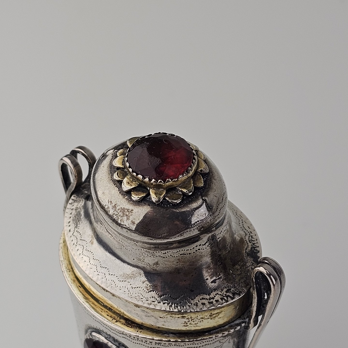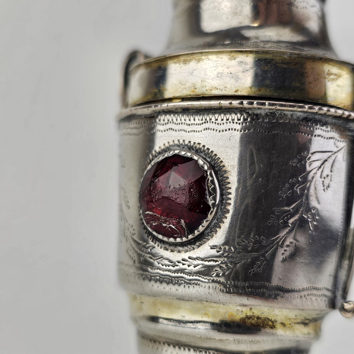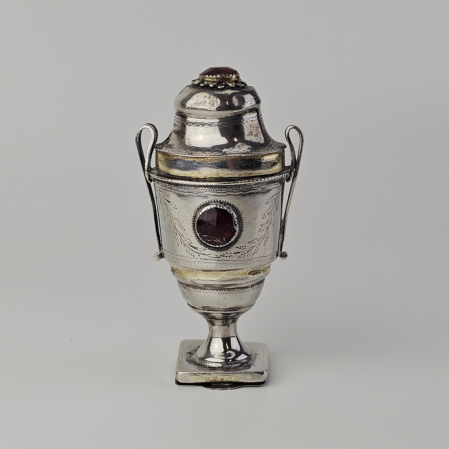 Hovedvandsæg i sølv dekoreret med forskellige smykkesten og bladværkProducent ukendt, stemplet måske JN
