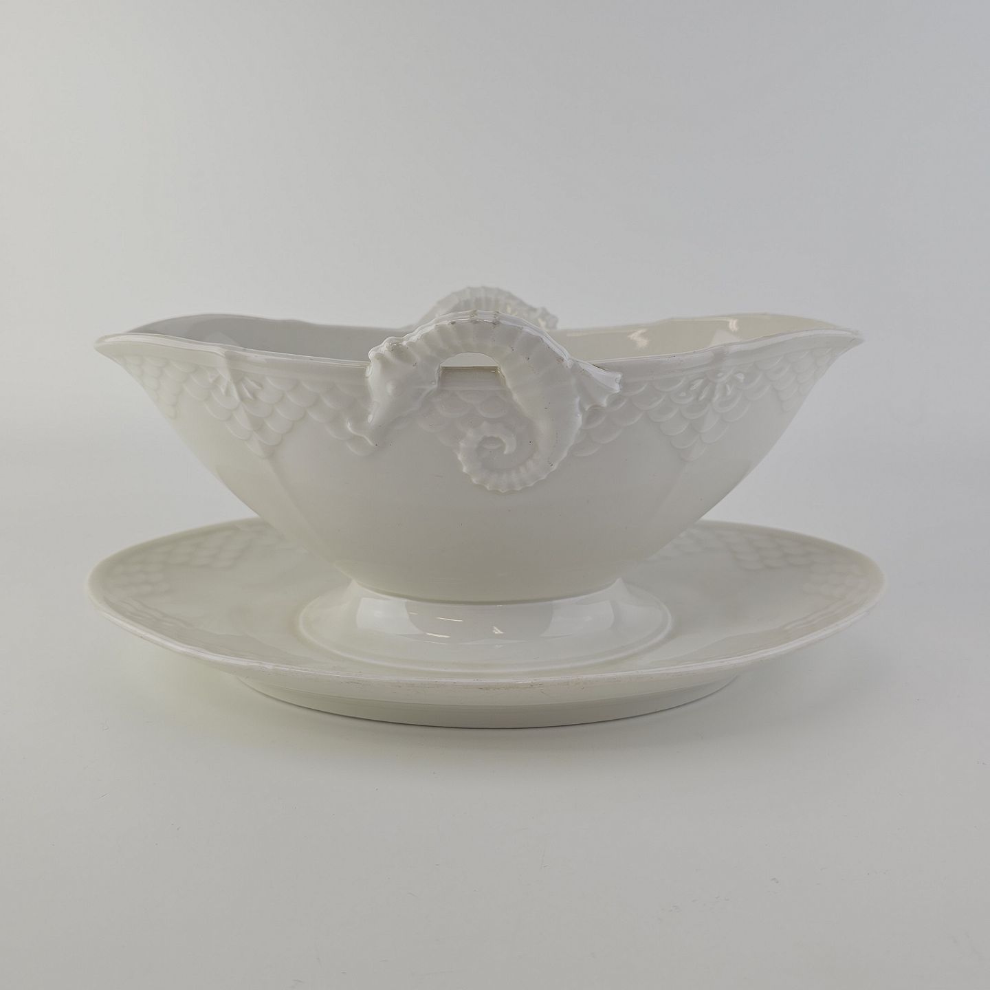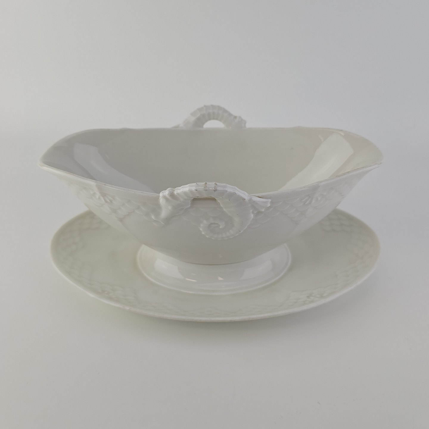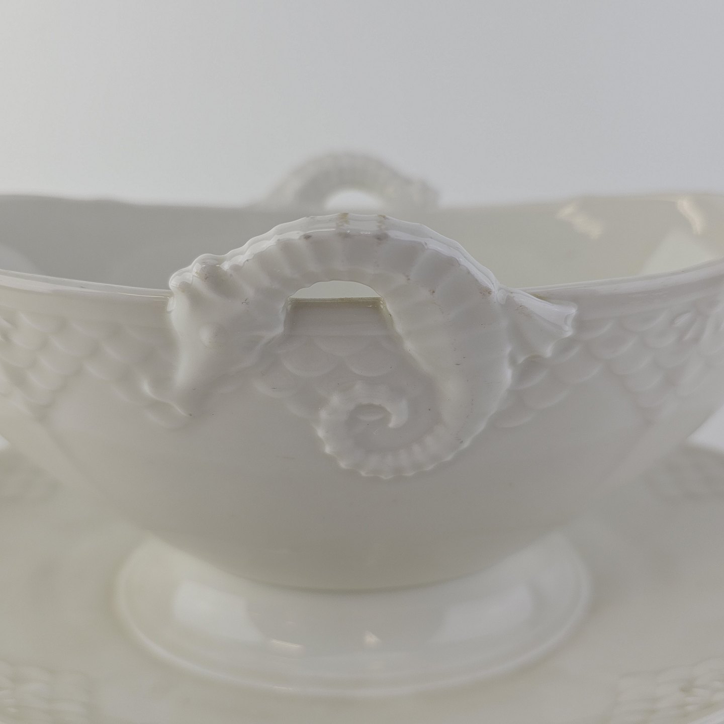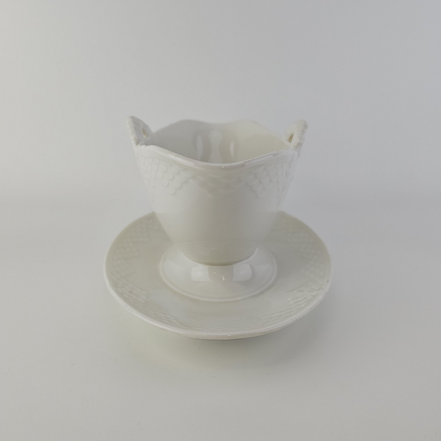 Elegance er cremefarvet glaseret porcelæn med skæl mønster