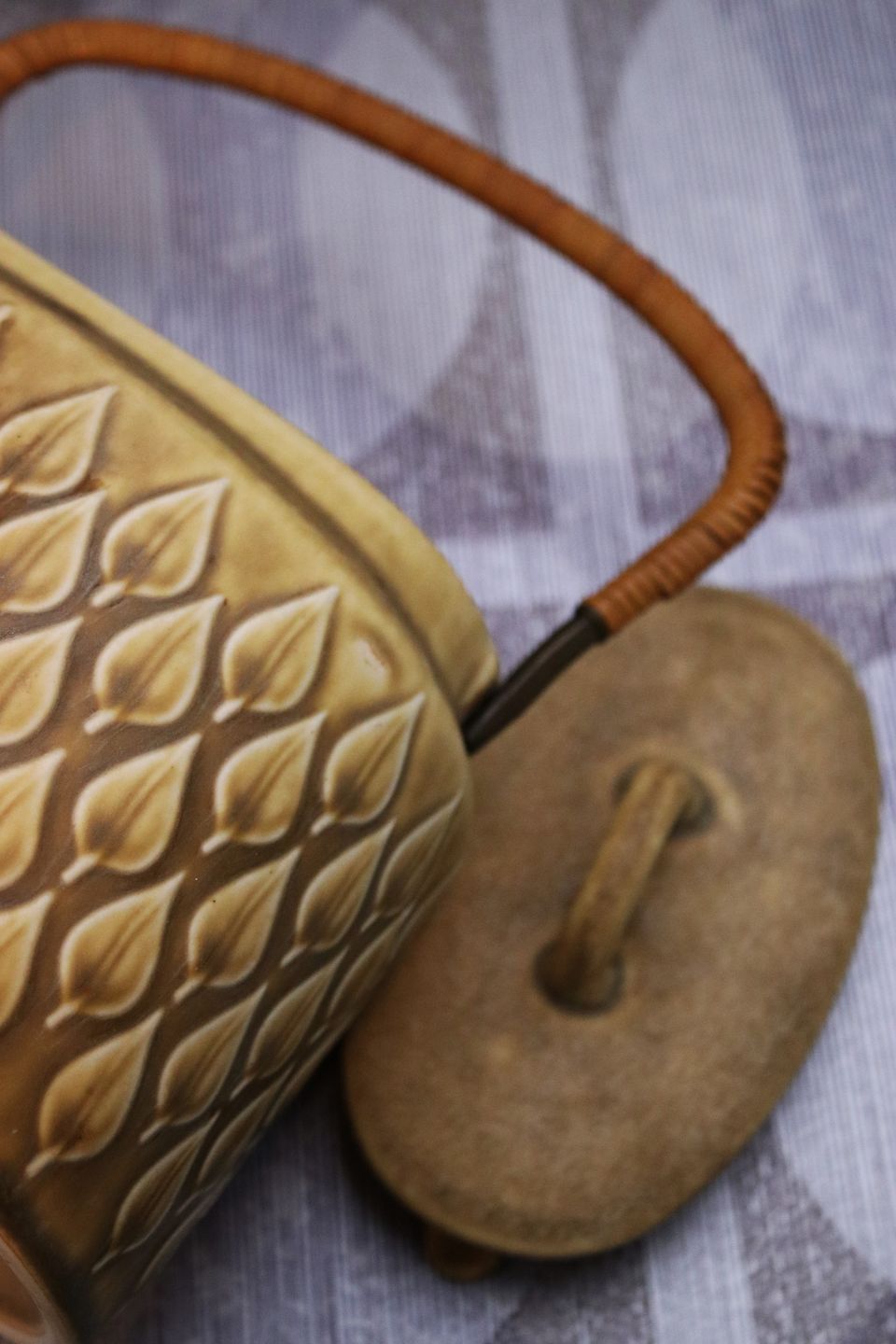 Bing & Grondahl Relief/Kronjyden oval teapot.H: 14cm. L: 22cm.