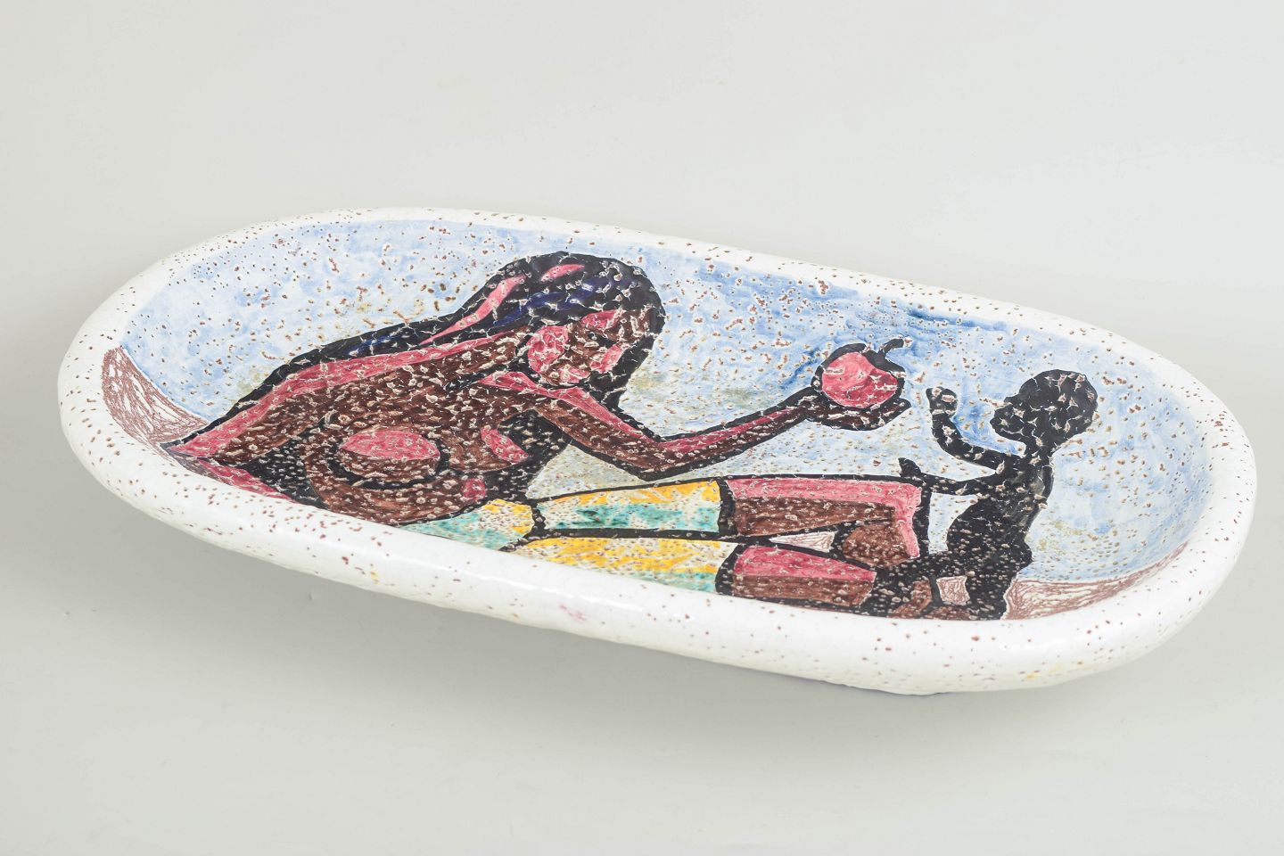 Erik Pløen (1925–2004) worked with ceramic wall reliefs and sculptural forms in the mid-20th century and was known for his distinctive visual language with figurative subjects and bold graphic surfaces. His works combine ceramic technique with a painterly sense of composition, often focusing on themes such as human relationships, mother and child figures, and symbolic imagery. Pløen’s pieces were typically produced as unique works and larger decorative commissions, making his output comparatively rare today.