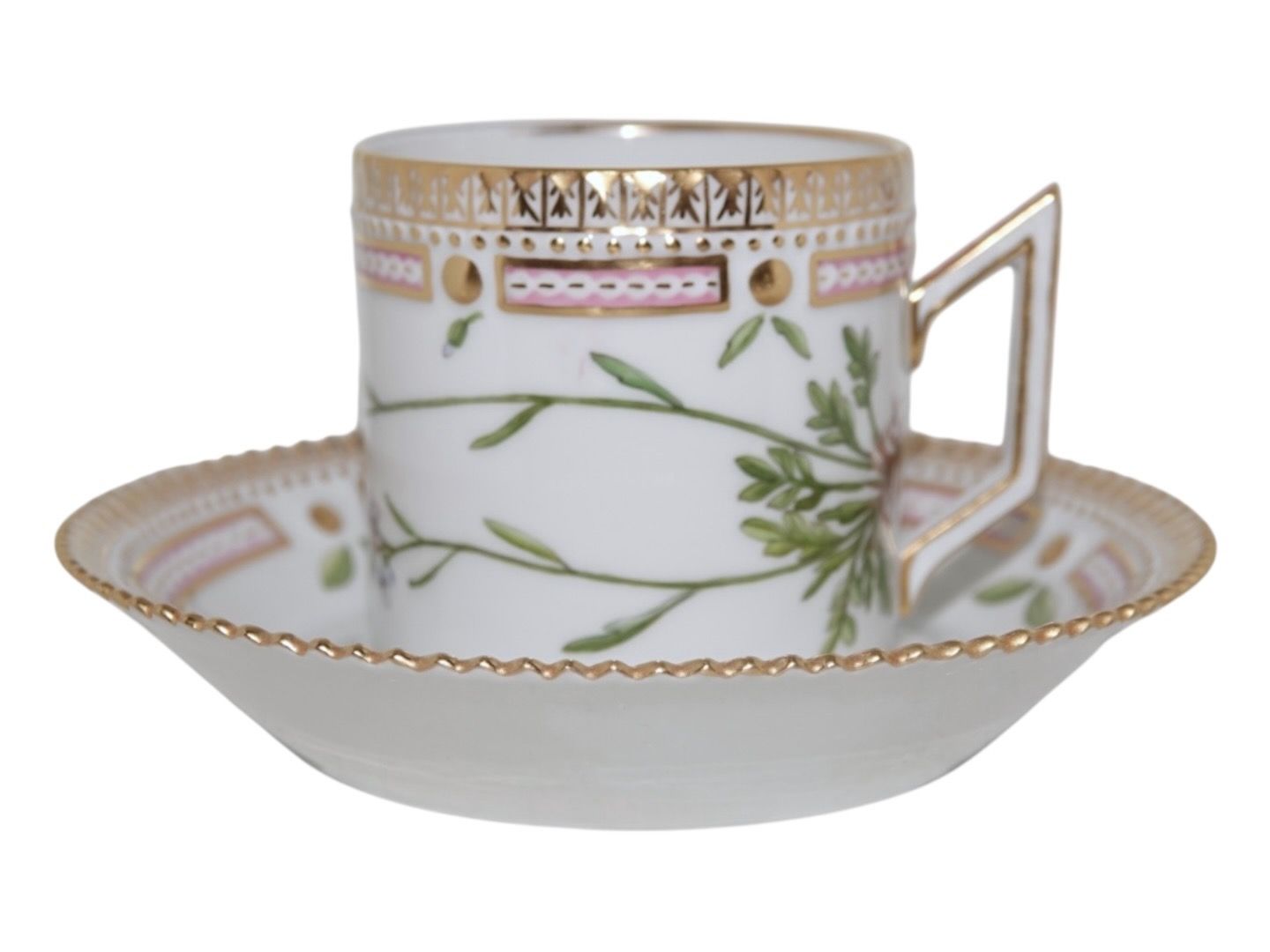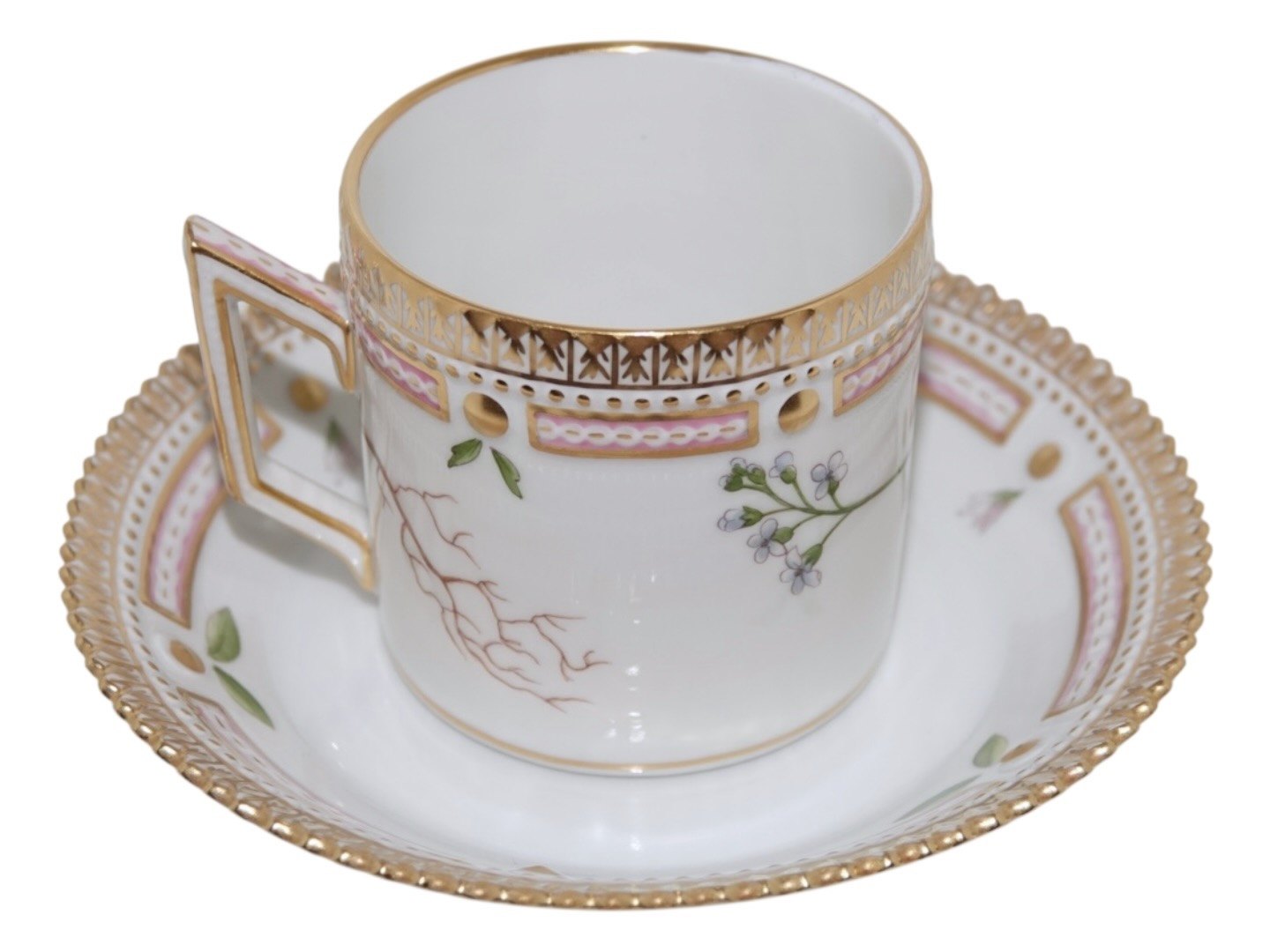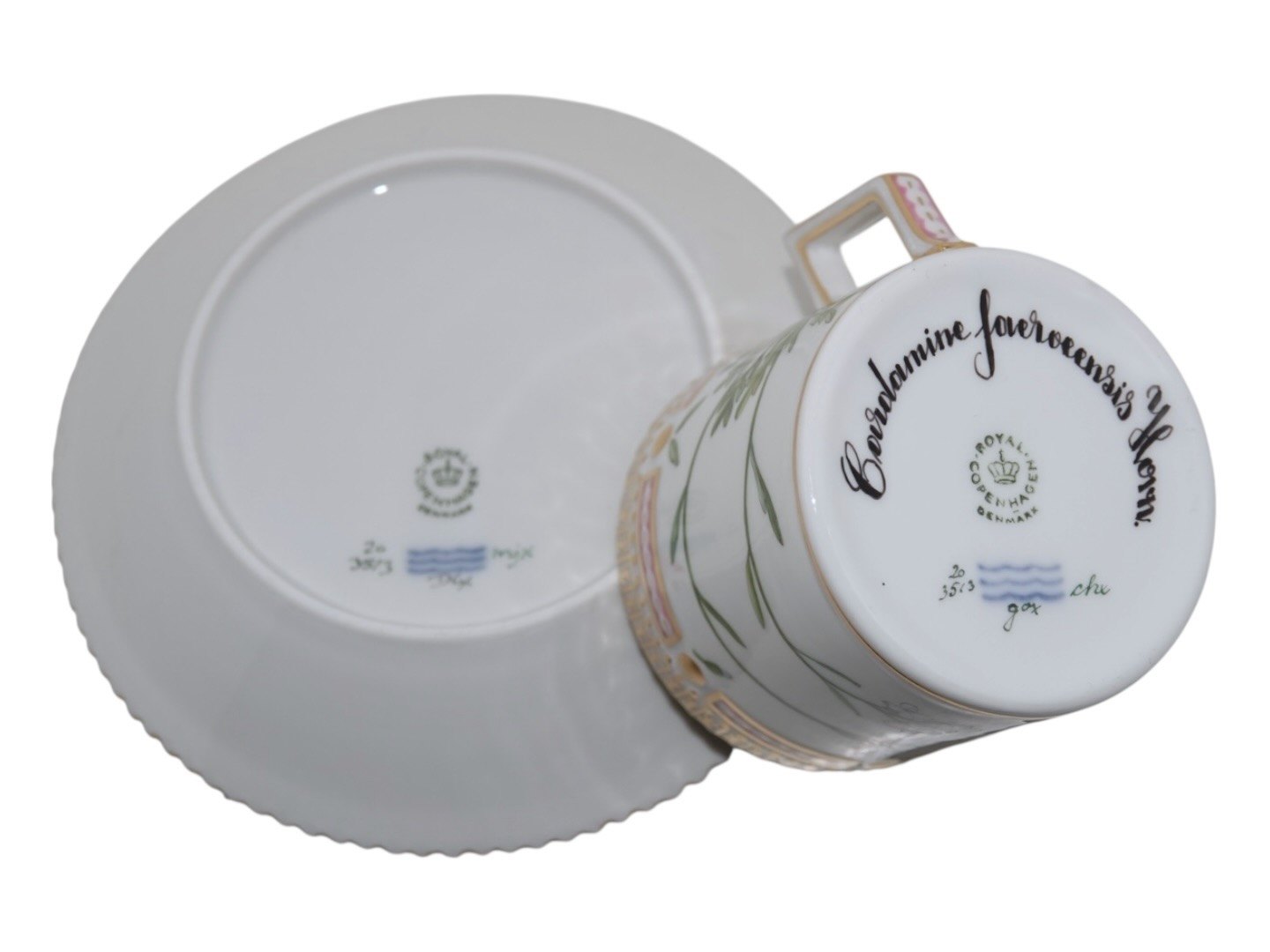 Royal Copenhagen Flora Danica, chocolate cup with matching saucer.Decoration number 20/3513.