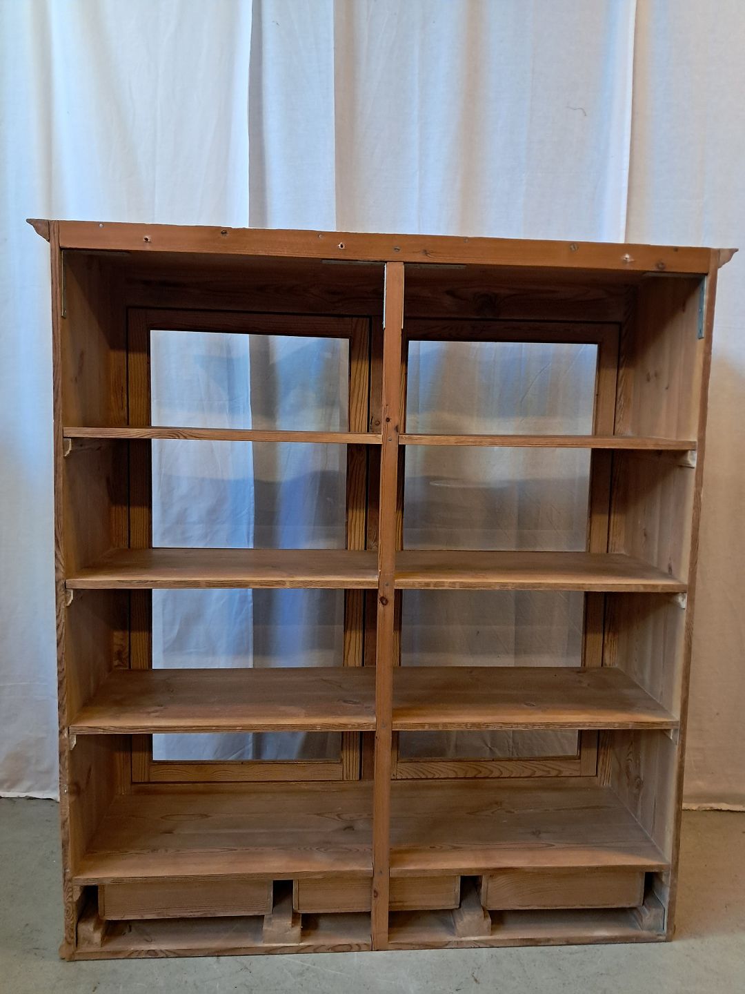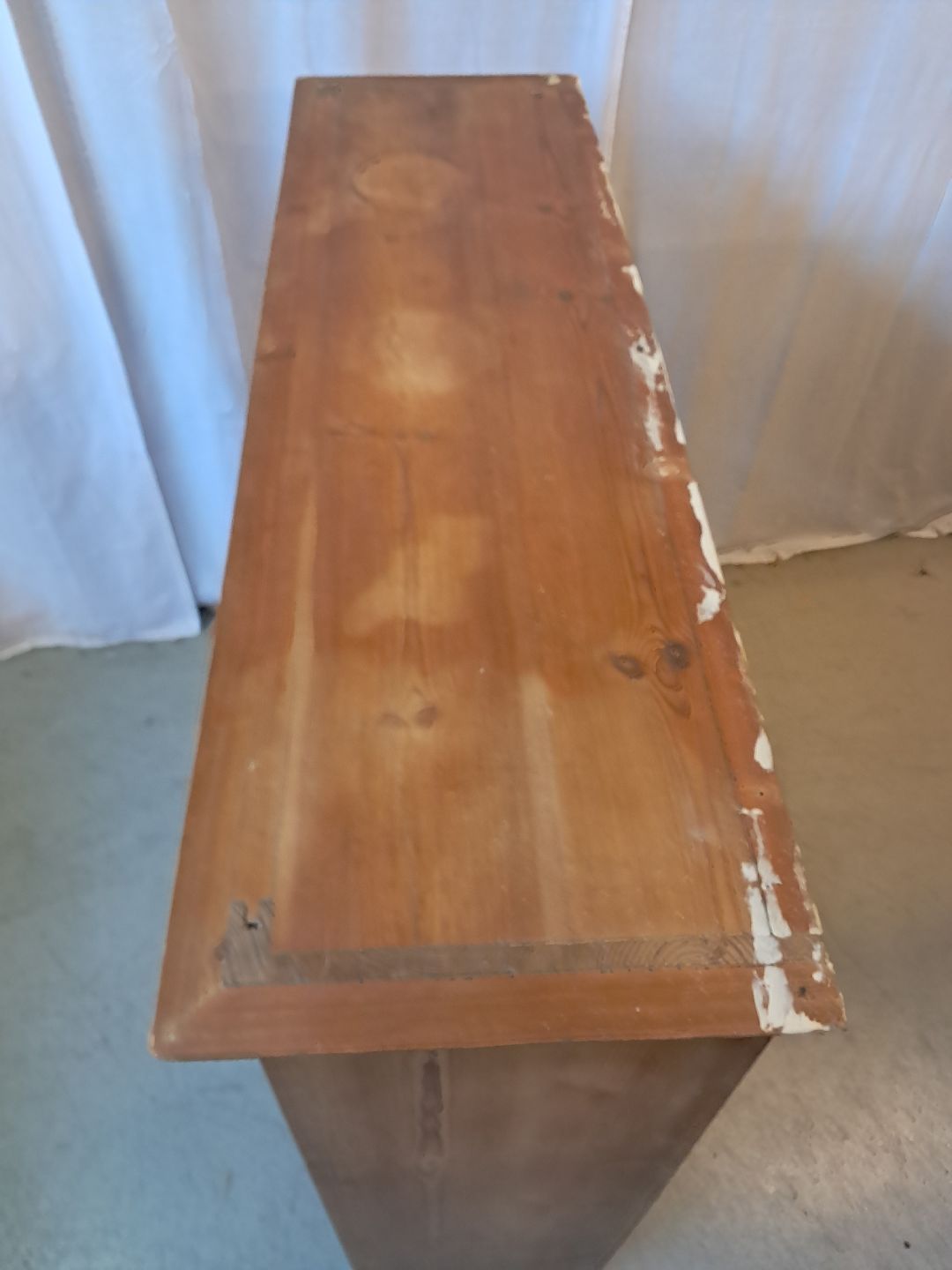 Gammelt køkkenskab i massivt fyrretræ, fra 1910erne.Det har brugsspor.