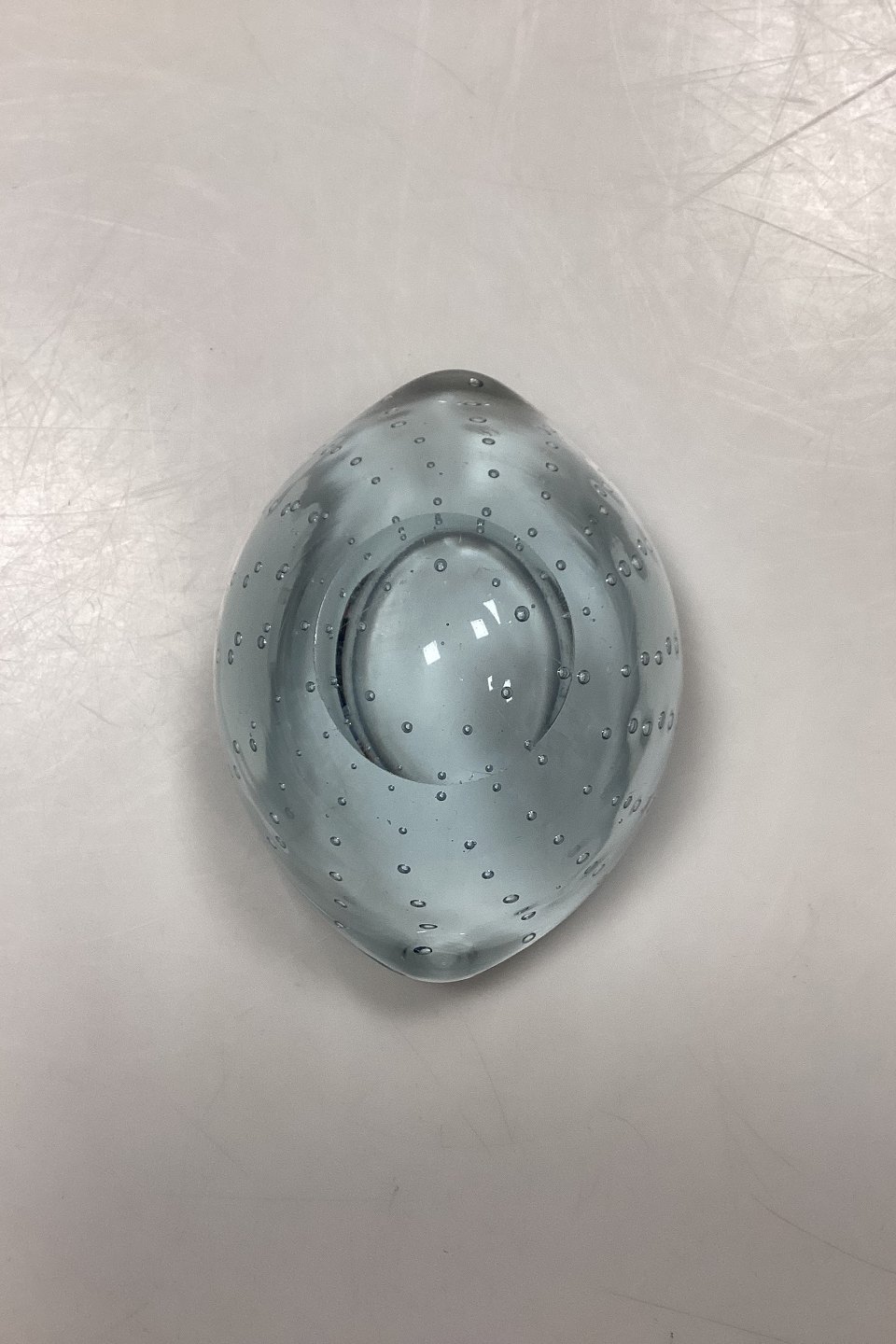 Small Glass Bowl with Bubbles. Probably Scandinavian from the 1950s. Color: Light blue. Light wear on the bottom.Measures 10 cm x 4.7 cm / 3.94 in. x 1.85 in.