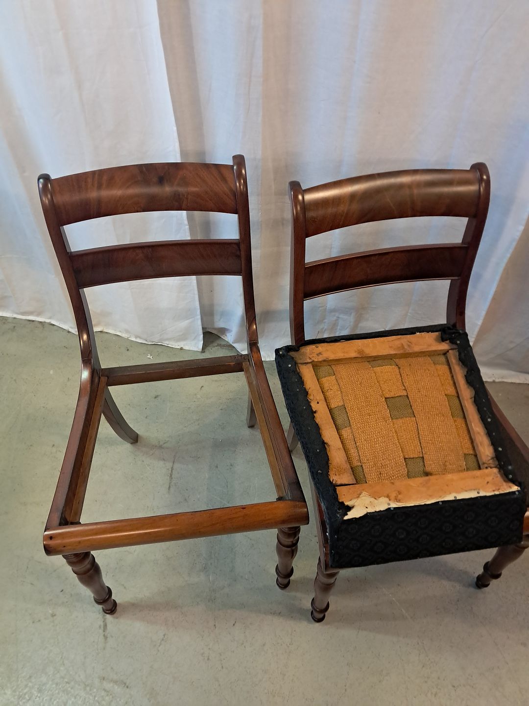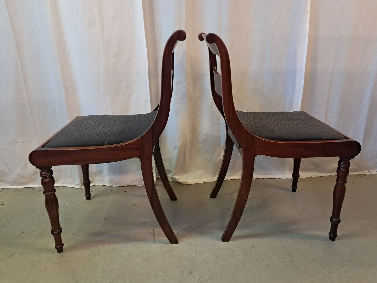 2 Salonstole i massivt mahogni og bøgetræ, fra 1910erne.De har brugsspor.