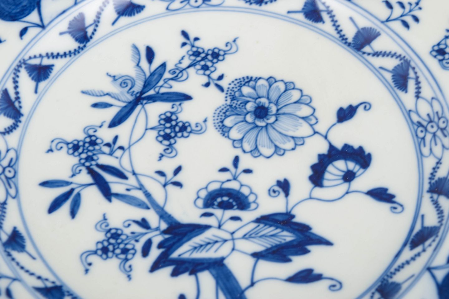 The Blue Onion pattern was introduced by Meissen in 1739 and was inspired by East Asian porcelain, featuring stylised floral and fruit motifs rendered in underglaze blue. It became one of the manufactory’s most enduring tableware designs. Around 1900, Meissen continued producing Blue Onion services of consistently high quality, with dinner plates forming a key part of the service and reflecting the manufactory’s long-standing standards of craftsmanship and decorative clarity.