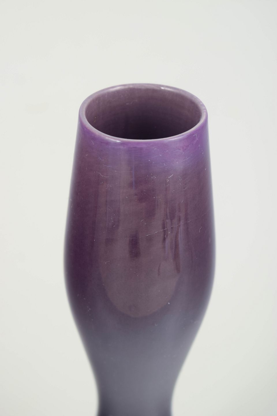 Carl-Harry Stålhane for Rörstrand, vase.Slim, sculptural stoneware vase with a deep purple glaze and softly waisted centre. The form is typical of Stålhane’s mid-20th-century work, combining architectural clarity with refined glaze effects.