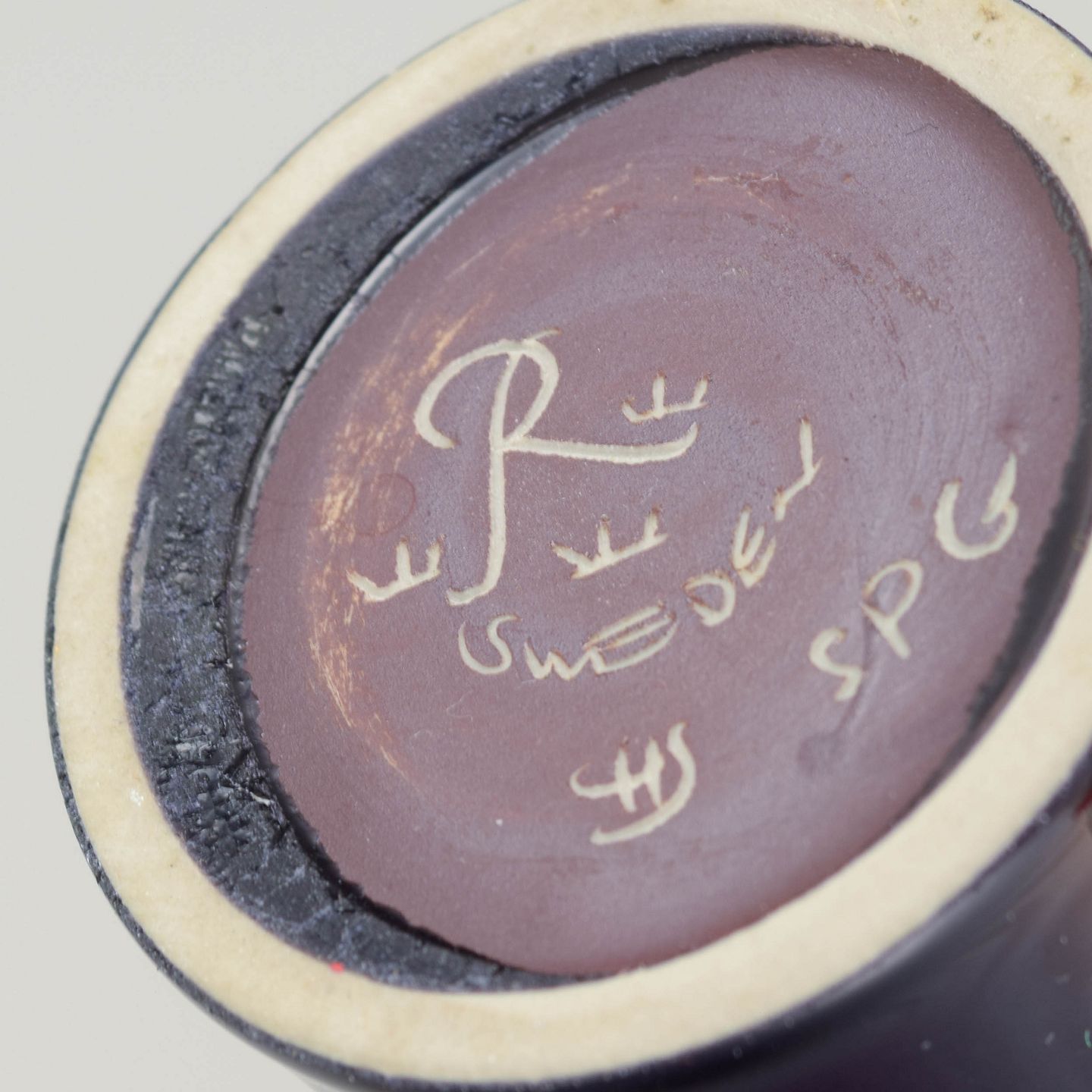 Carl-Harry Stålhane (1920–1990) was one of the most influential Swedish ceramic artists of the 20th century. Born in Mariestad, he joined Rörstrand at a young age, initially training and later working as an assistant to Gunnar Nylund. He soon established his own distinctive style, characterised by disciplined proportions, sculptural restraint, and innovative glaze work. During the 1950s and 1960s he was responsible for many of Rörstrand’s most celebrated studio and art ceramics, playing a key role in the company’s international standing.