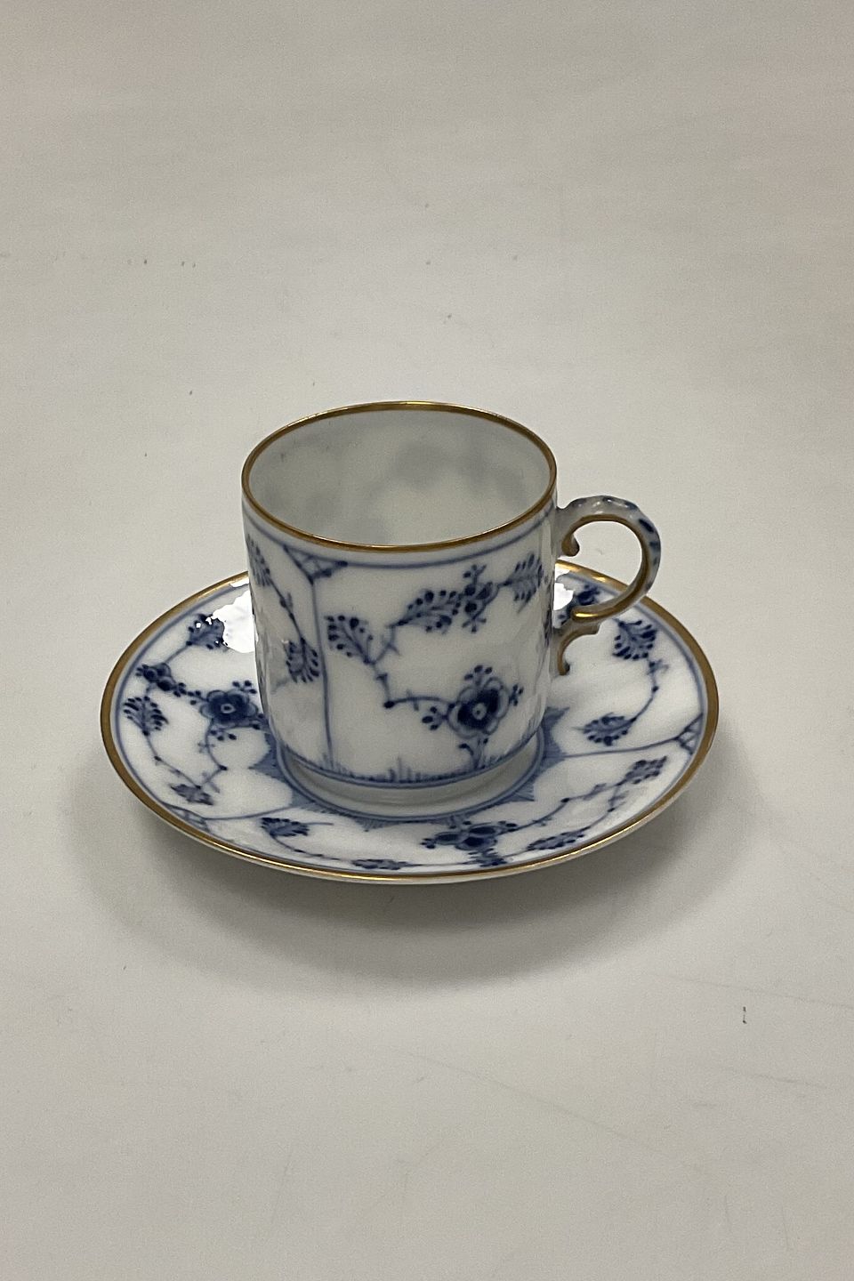 Royal Copenhagen Blue Fluted Plain with gold Mokka Cup No. 94Measures 4,3cm x 4,5cm and saucer 9cm / 1.69 inch x 1.77 inch and 3.54 inch