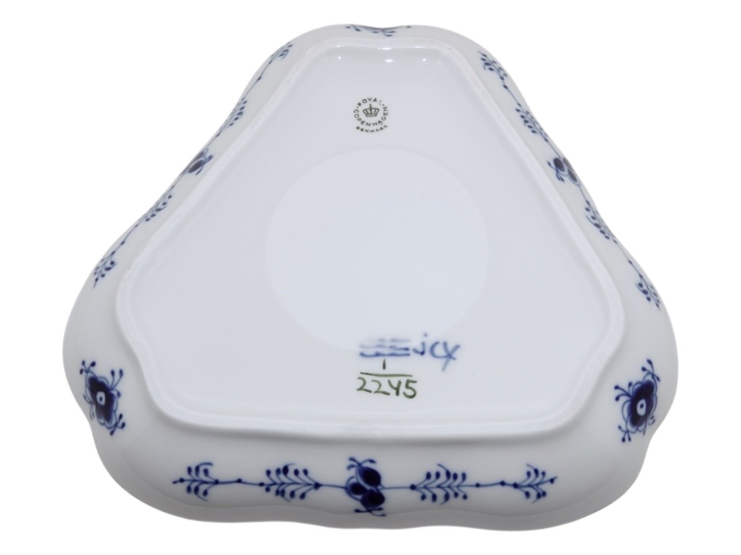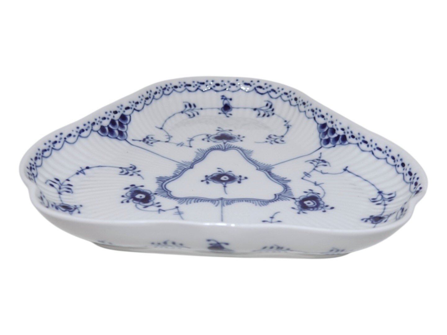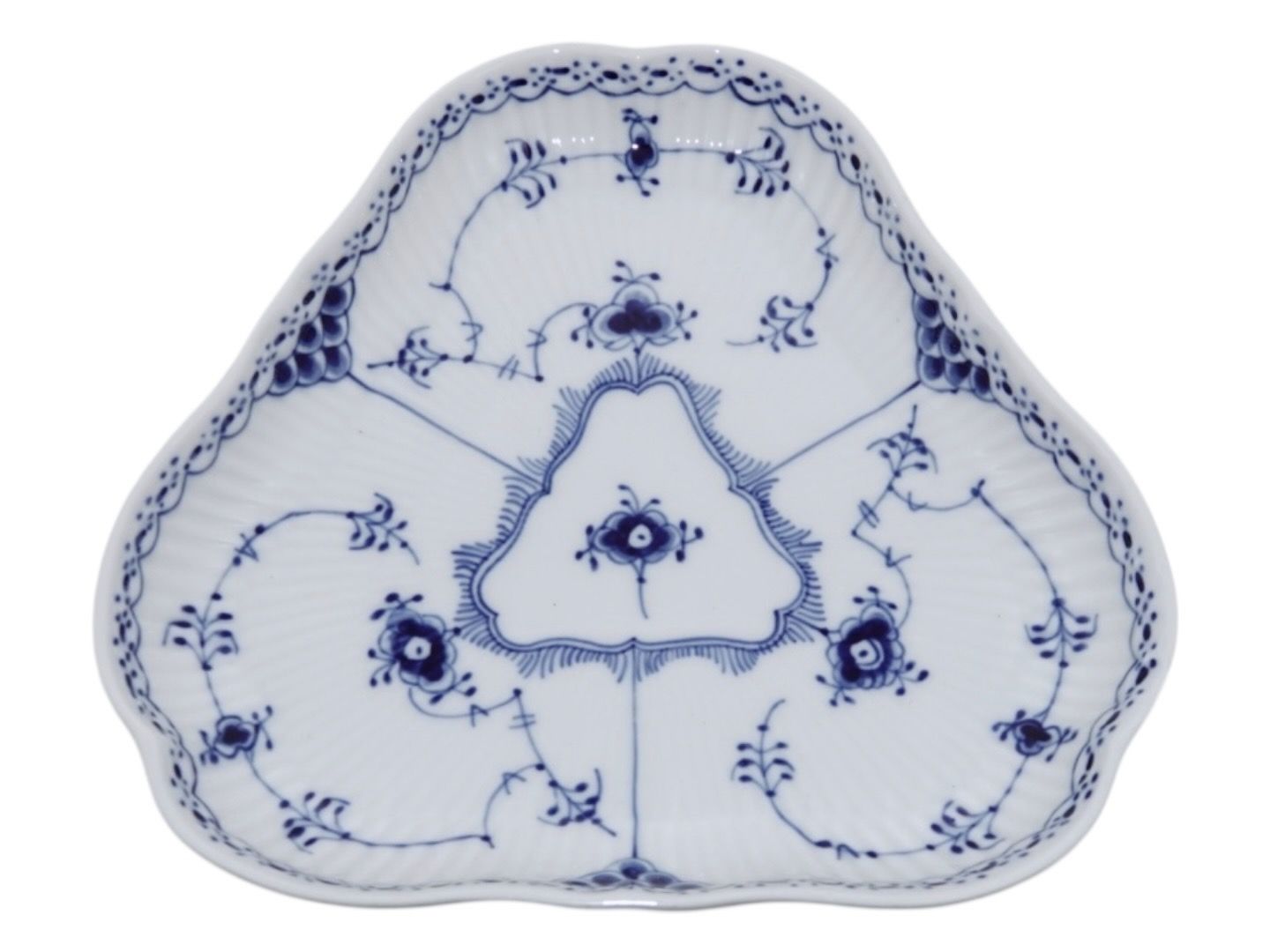 Royal Copenhagen Blue Fluted Half Lace, triangular dish.The factory mark shows, that this was produced in 1968.