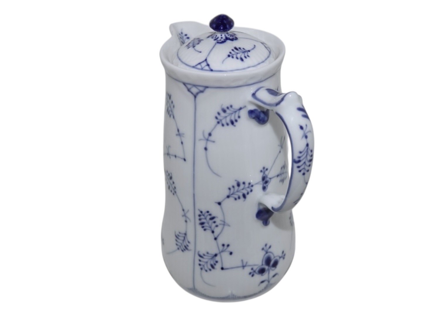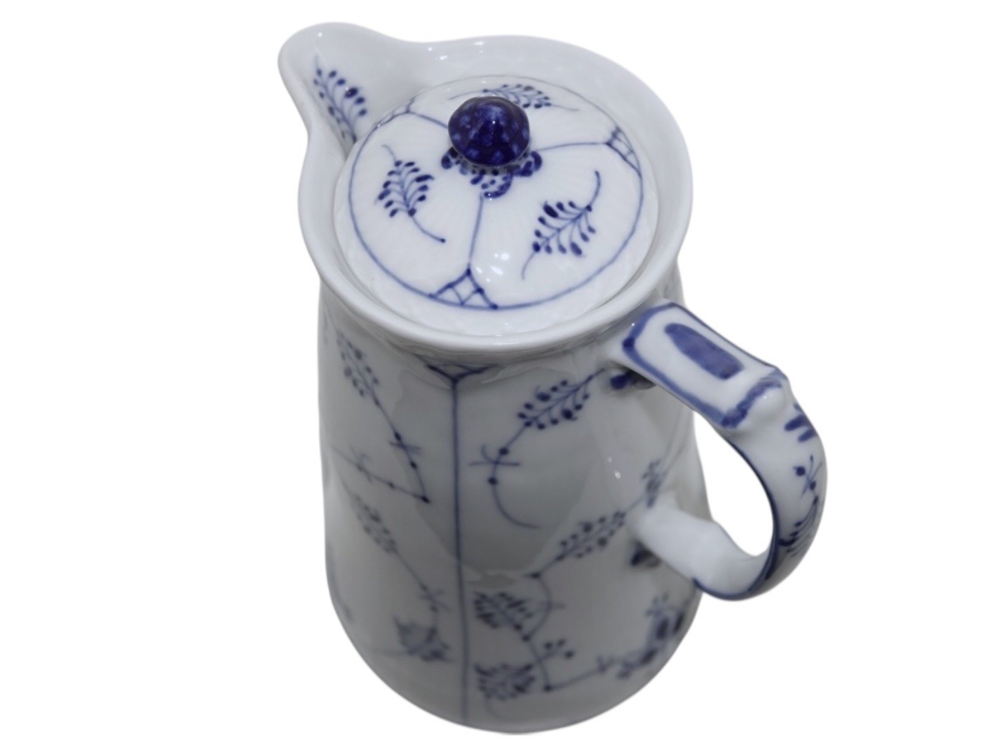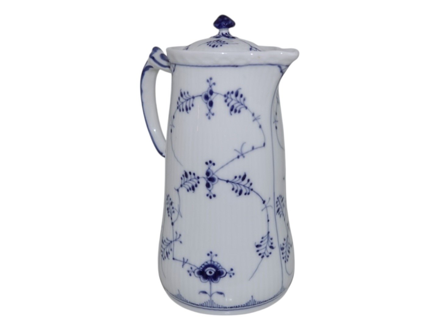 Royal Copenhagen Blue Fluted Plain, rare lidded chocolate pitcher with matching lid.The factory mark shows, that this was produced between 1898 and 1923.
