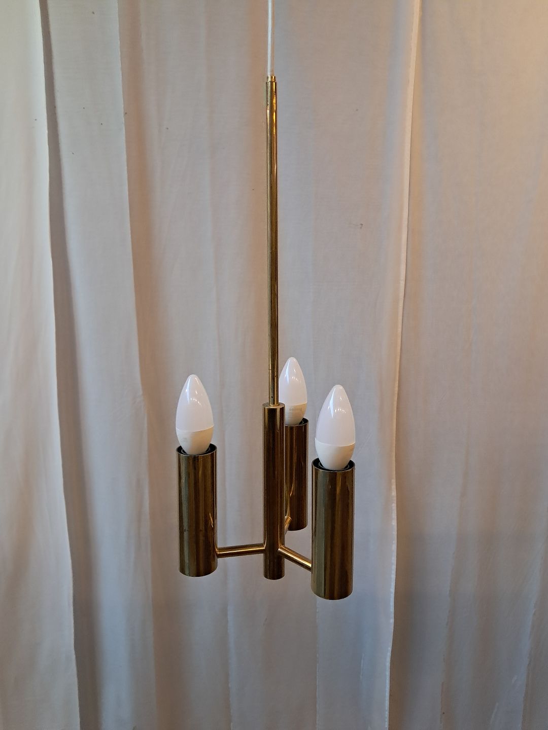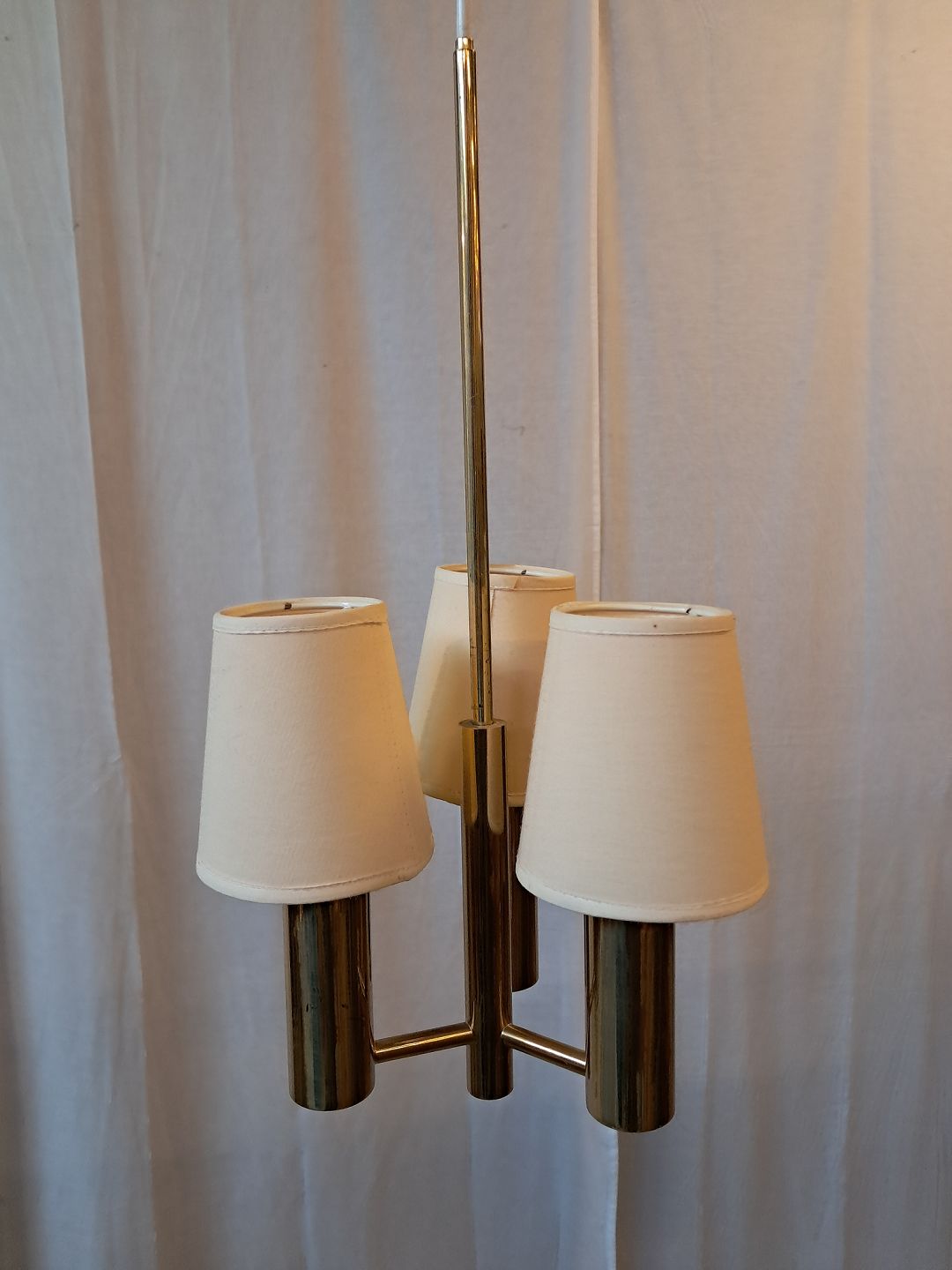 Loftlampe i messing med skærme, fra 1950erne.Den har brugsspor.