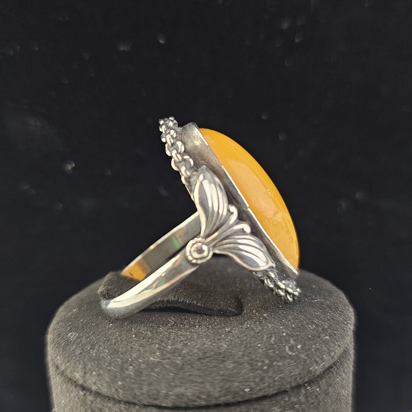 Ring i sølv udformet i skønvirke stil med rav Producent Einer Fiberg