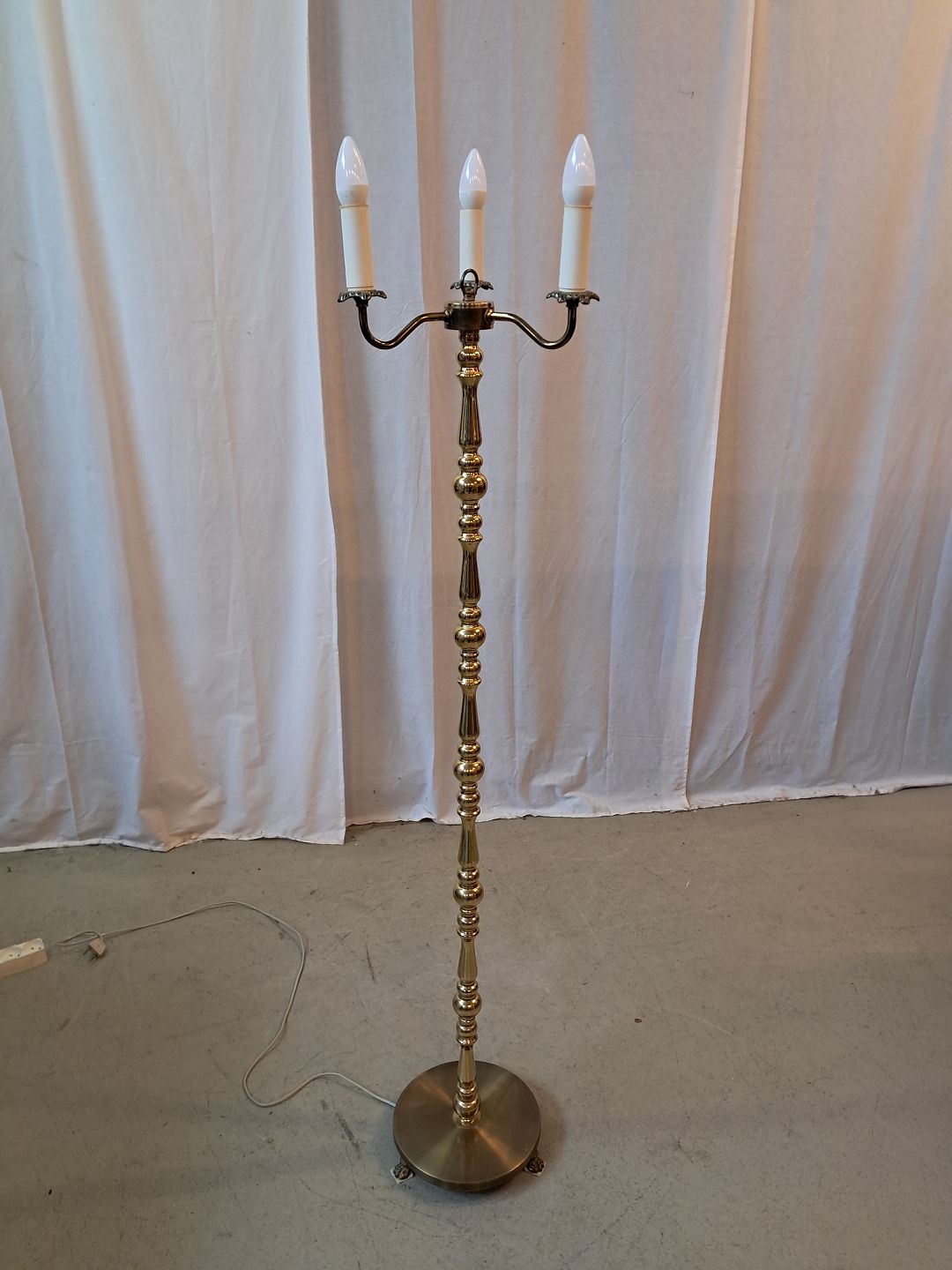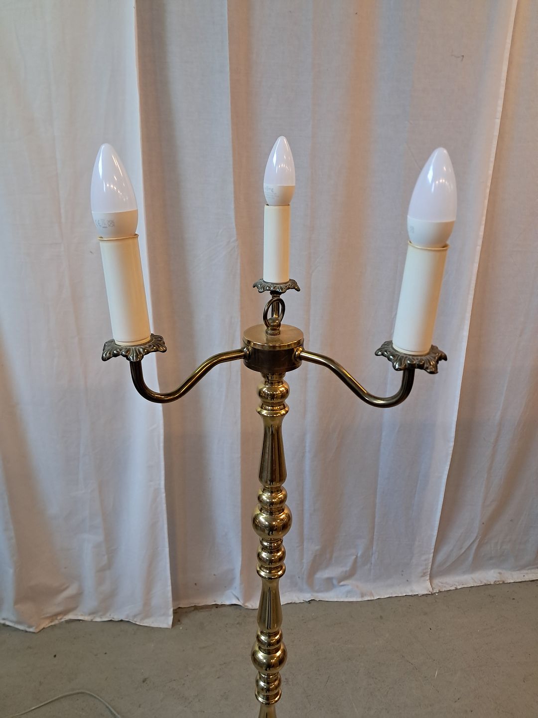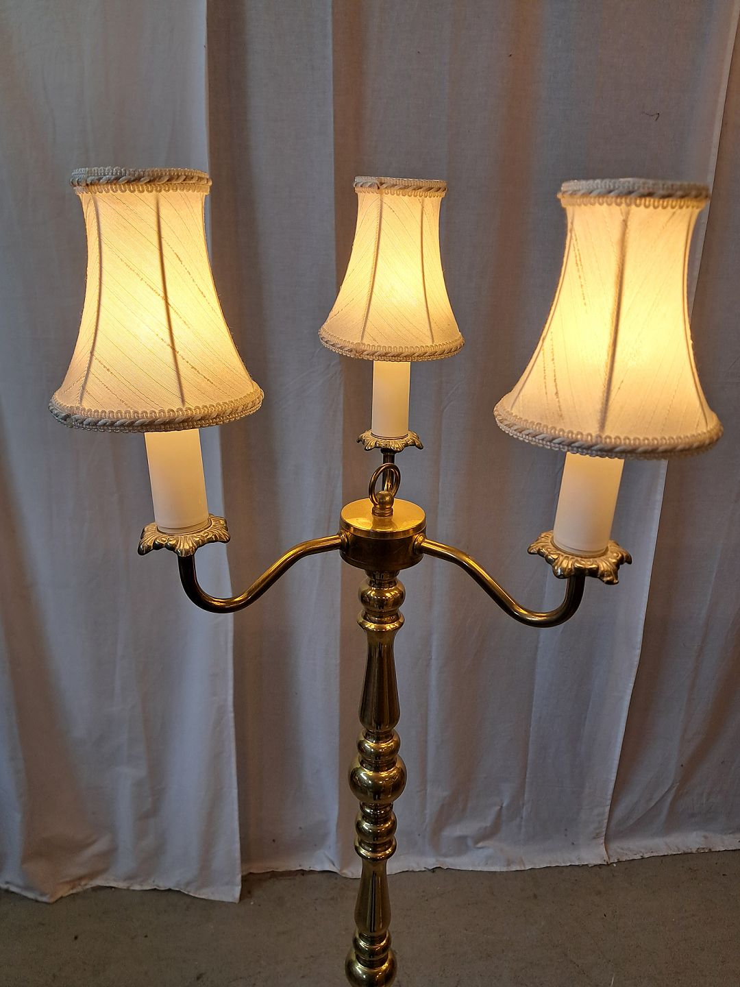 Standerlampe i messing med 3 skærme, fra 1980erne.Den har brugsspor.