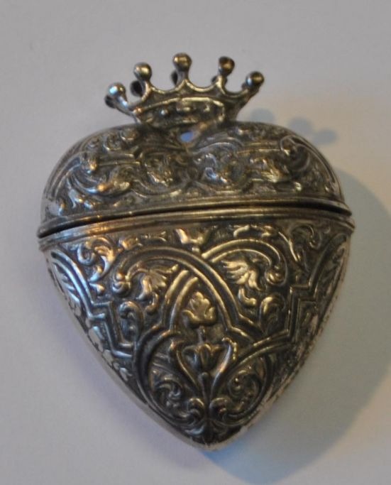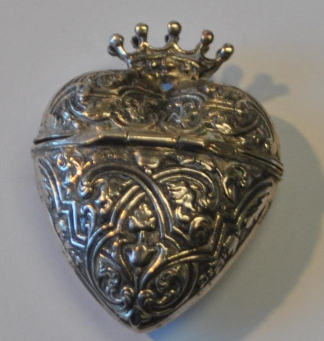 Heart-shaped main water egg in silver with crown, 20th century. Denmark. Stamp: 830. H.: 4.5 cm. W.: 3.6 cm.Item number: 28871
