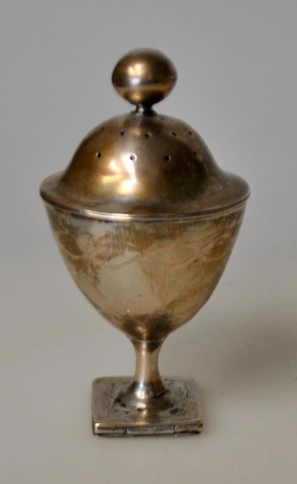 Niels Holst Wendelboe (1763 - 1811) Aarhus, Denmark: Empire main water egg. 1827. With scent holes. Embalming case. Inside gilded. With engravings. Stamped on the bottom. Also with engravings: NS S - MC D 1827.Item number: 28880