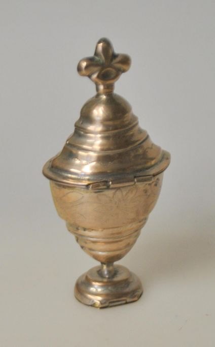 Niels Peter Falck (1779 - 1858) Holbæk, Denmark: Baroque main water egg with top and embalming chamber. Stamped in the embalming chamber. With side decorations. H.: 10.5 cm.Item number: 28873