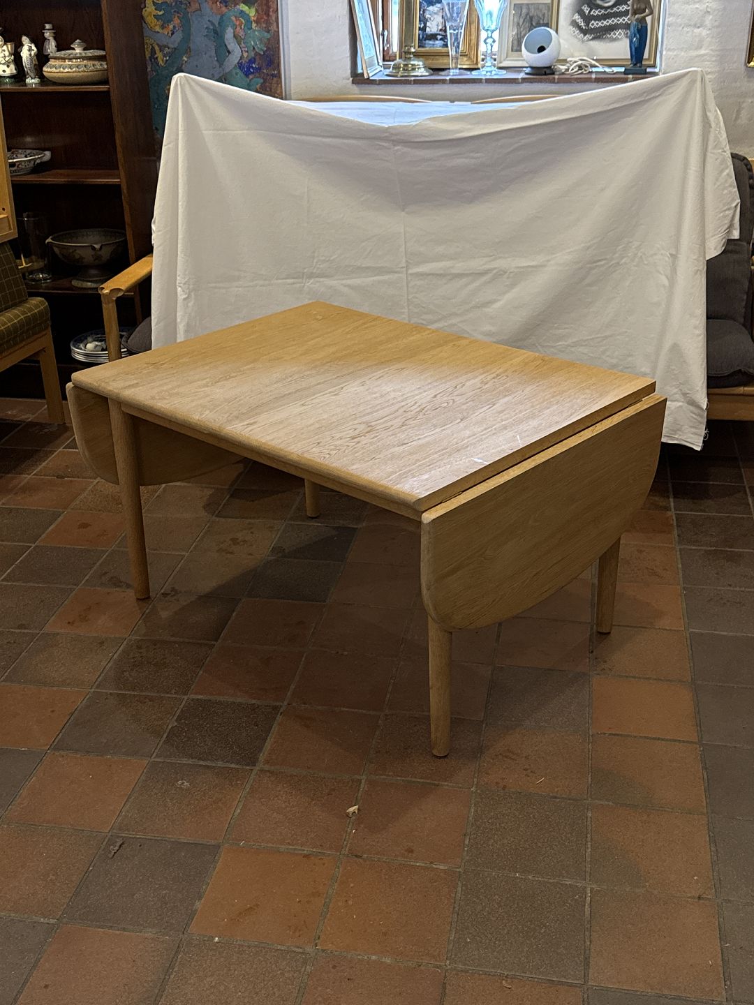 Hans J. Wegner sofabord m. Klapper model GE85 udført i massiv sæbehandlet egetræ. Fremstillet hos Getama i 1990’erne. Fremstår med brugsspor.