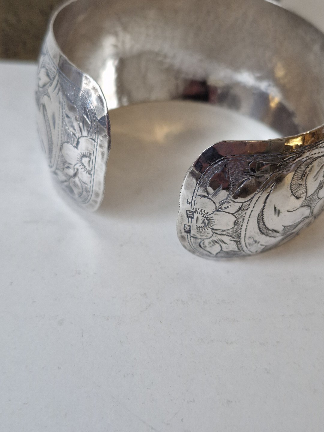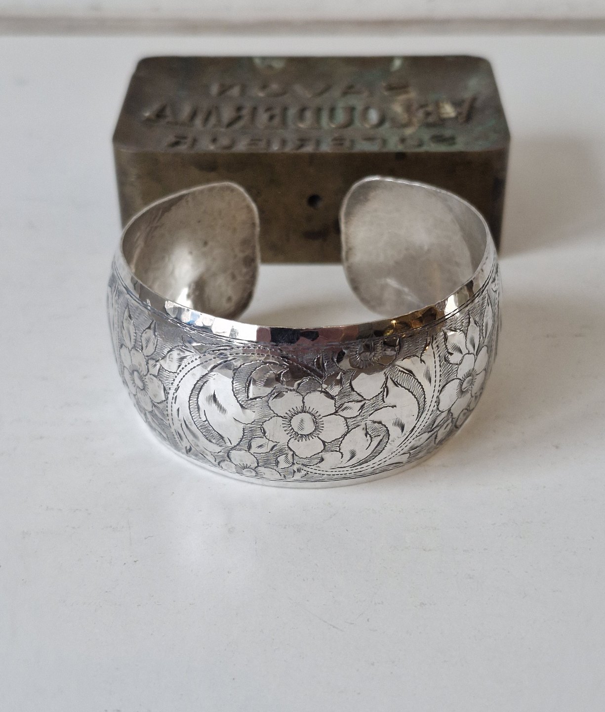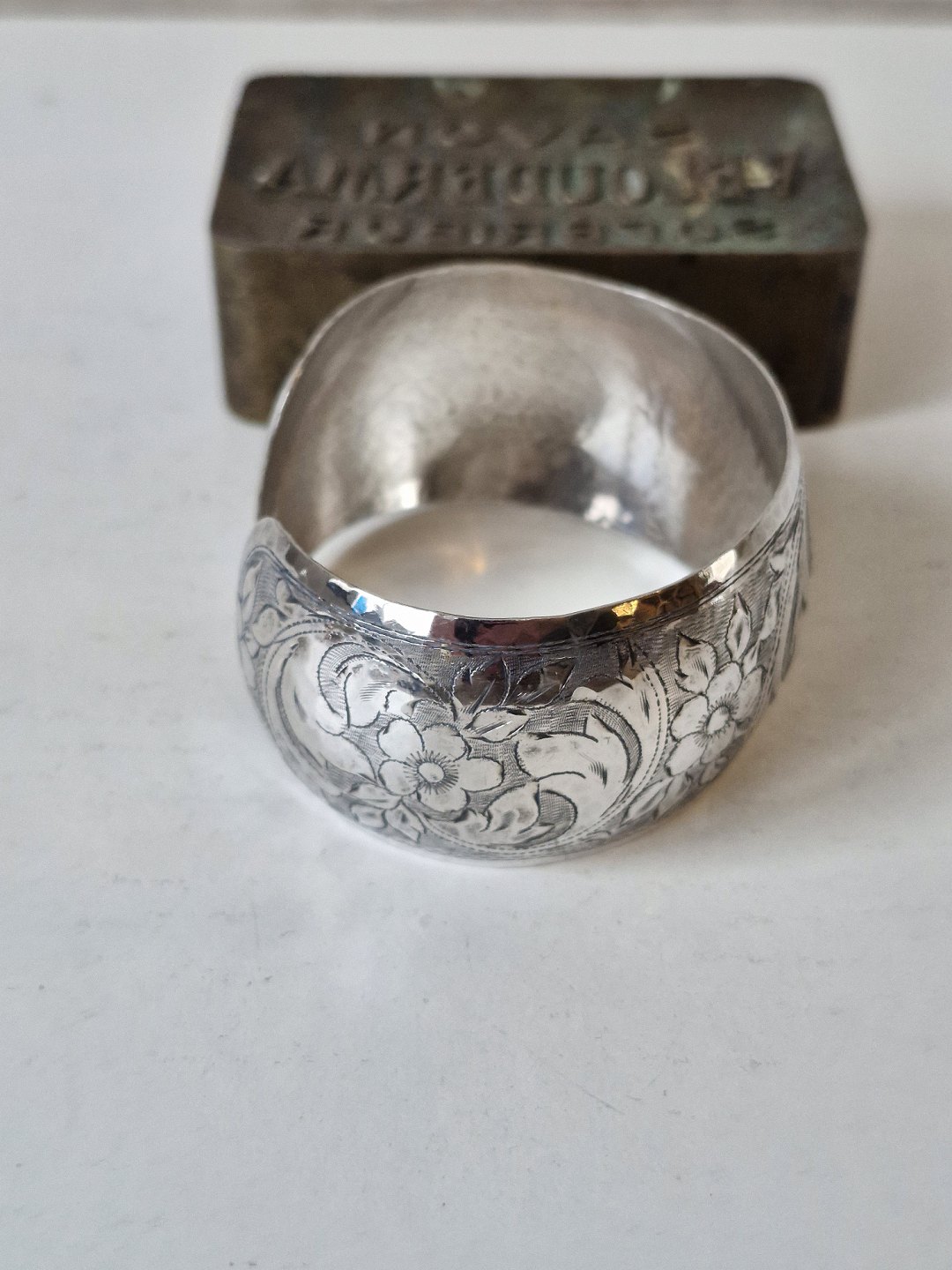 Vintage silver bangle, beautifully chiseled floral motif.Stamp: OD - 900.