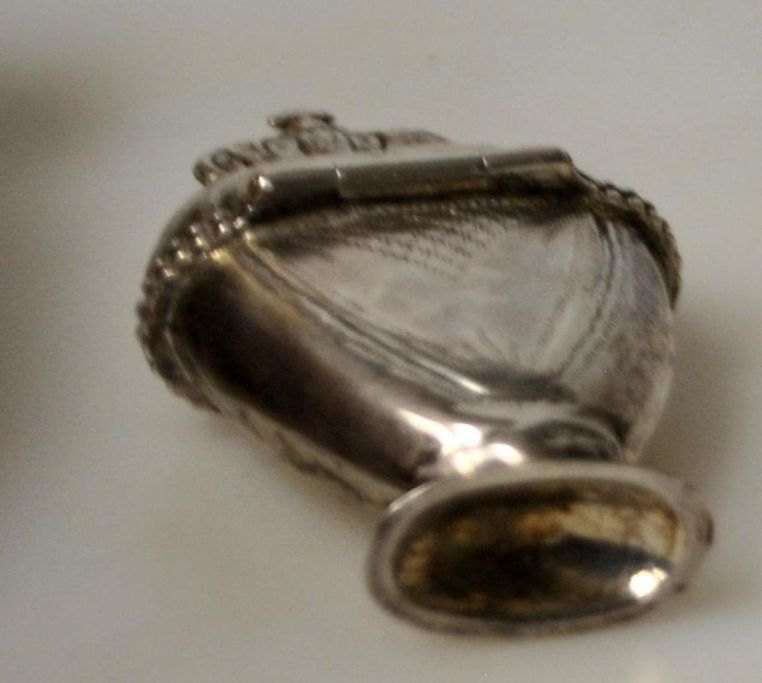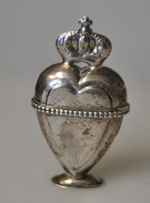 Lorenz Peter Helt (1783 - 1855) Thisted, Denmark: Heart-shaped main water egg with crown. On a stand. With decorative engravings. Stamped on the edge of the egg. 13 sløding. Height.: 7 cm.Item number: 28876
