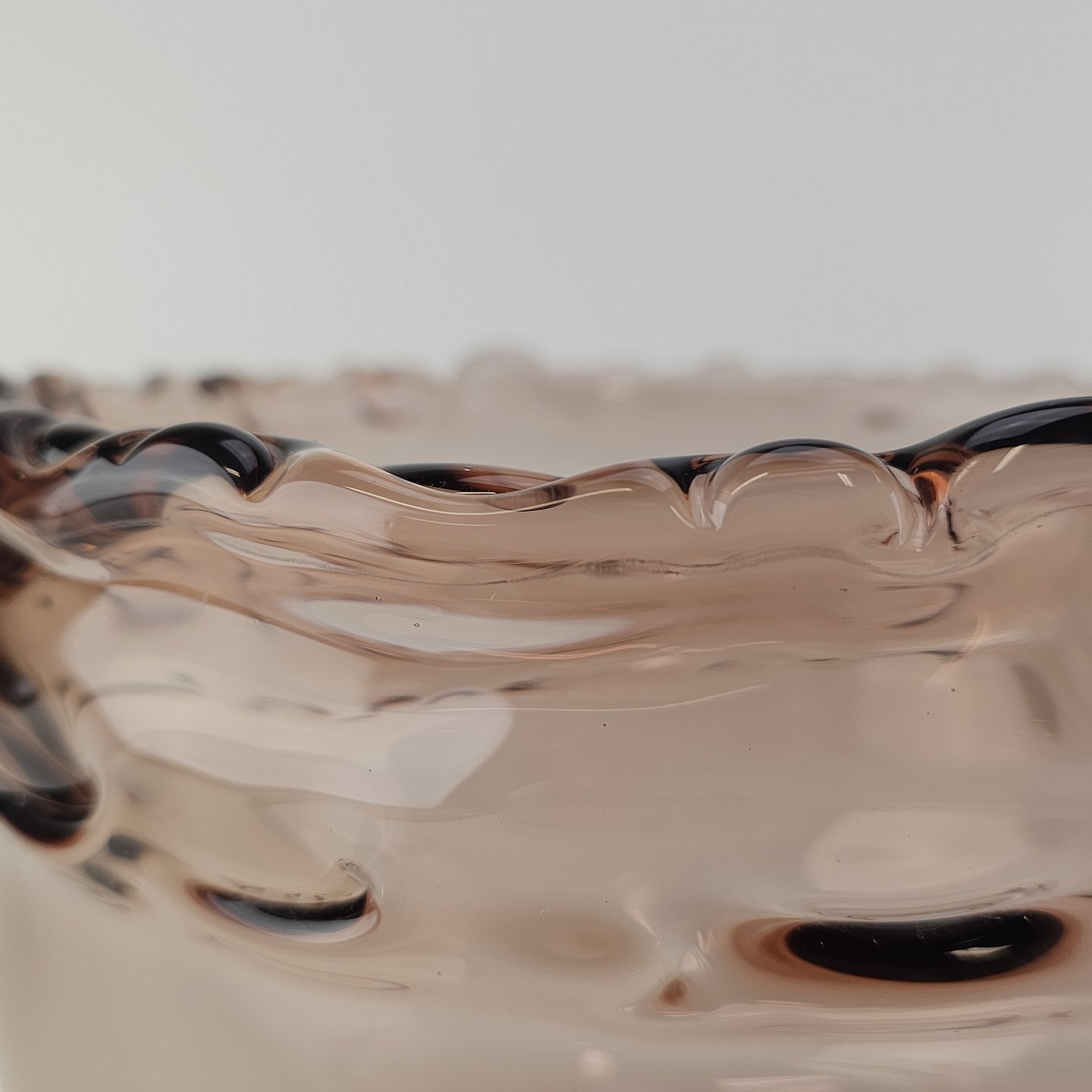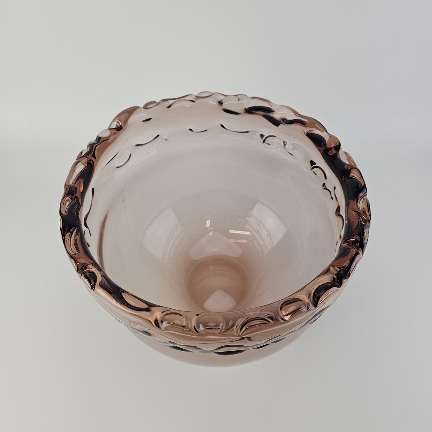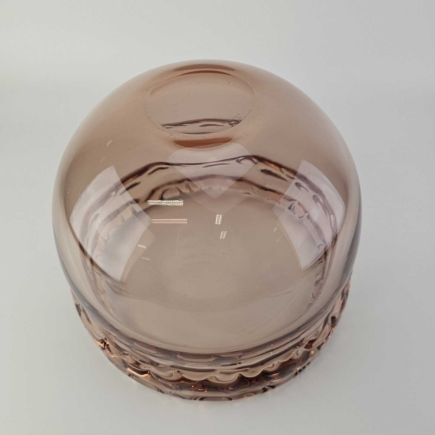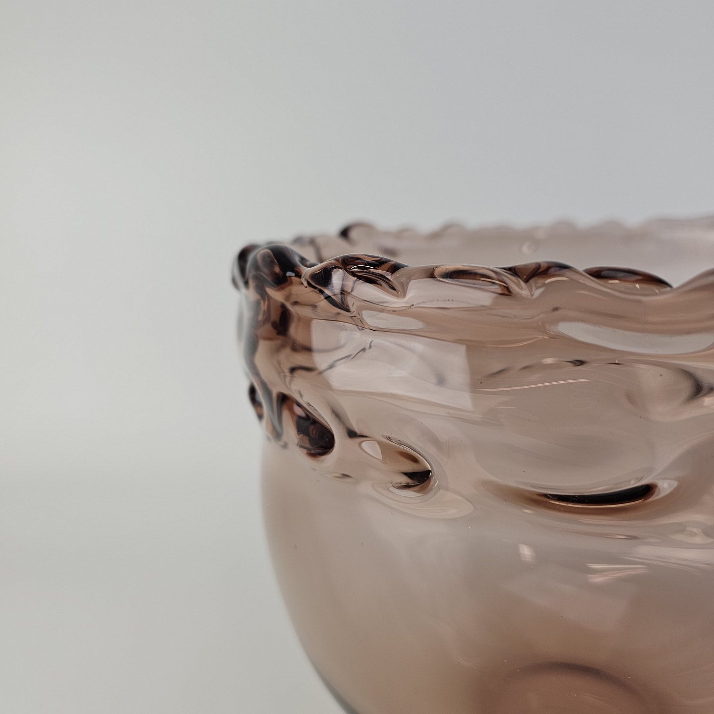 Skål i rosafarvet glas med bølget kant fra serien RosamundFormgiver Christer Holmgren