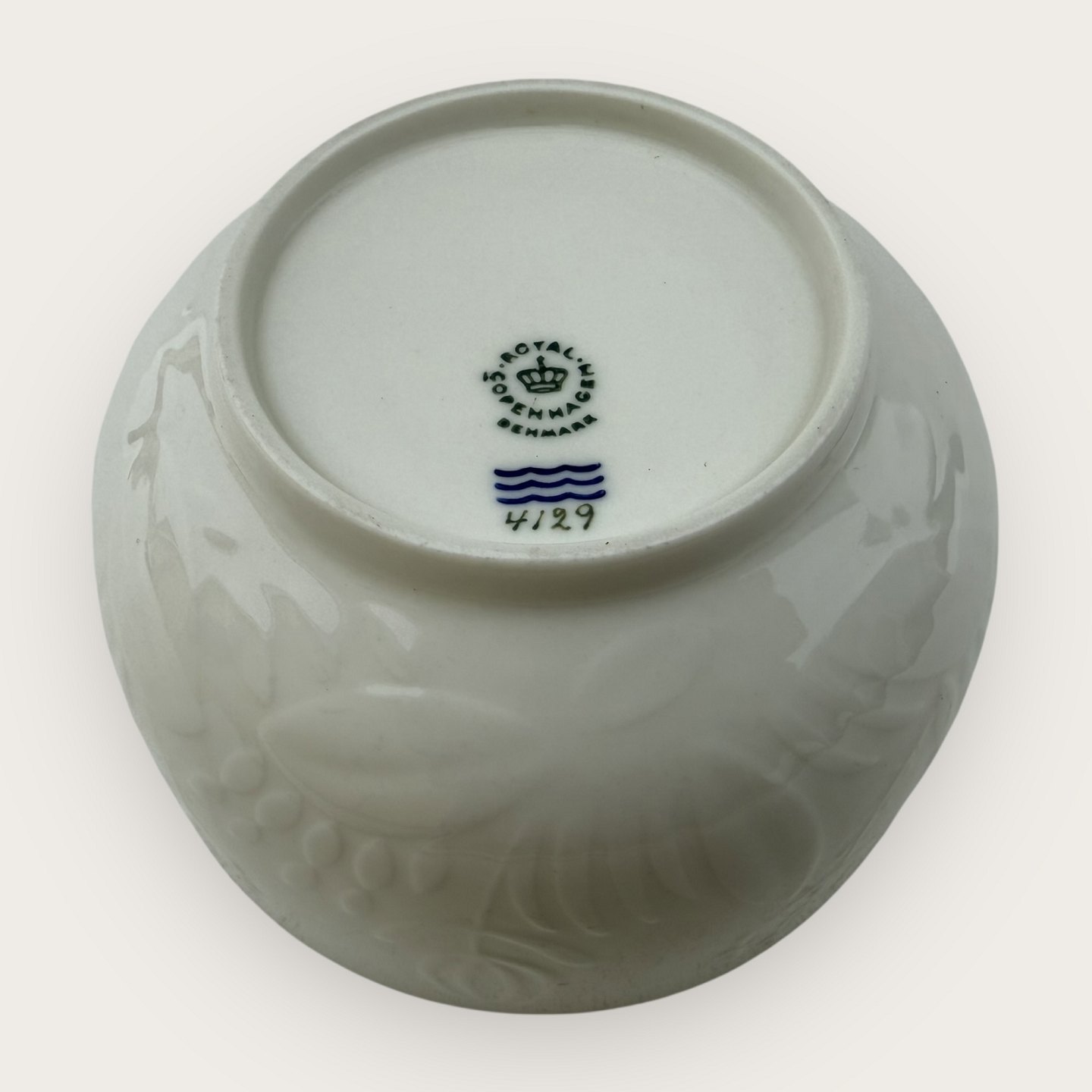 Royal Copenhagen, #4129, bowl in blanc de chine with relief pattern of, among other things, flowers and leaves, diameter 15cm, height 9cm *Good condition*