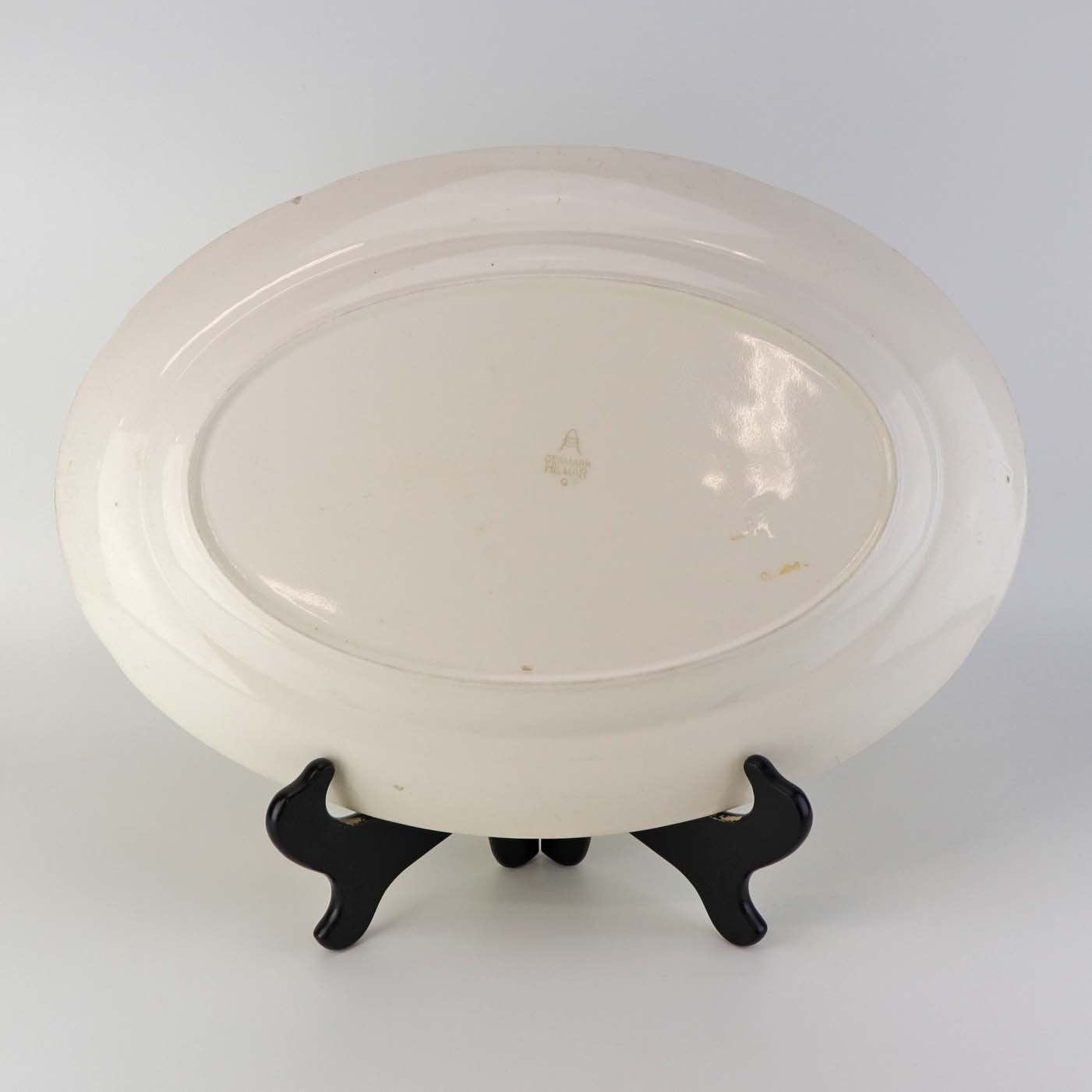 Stort ovalt serveringsfad fra stellet Hilmar, som blev fremstillet i perioden 1940-1954 Producent Aluminia