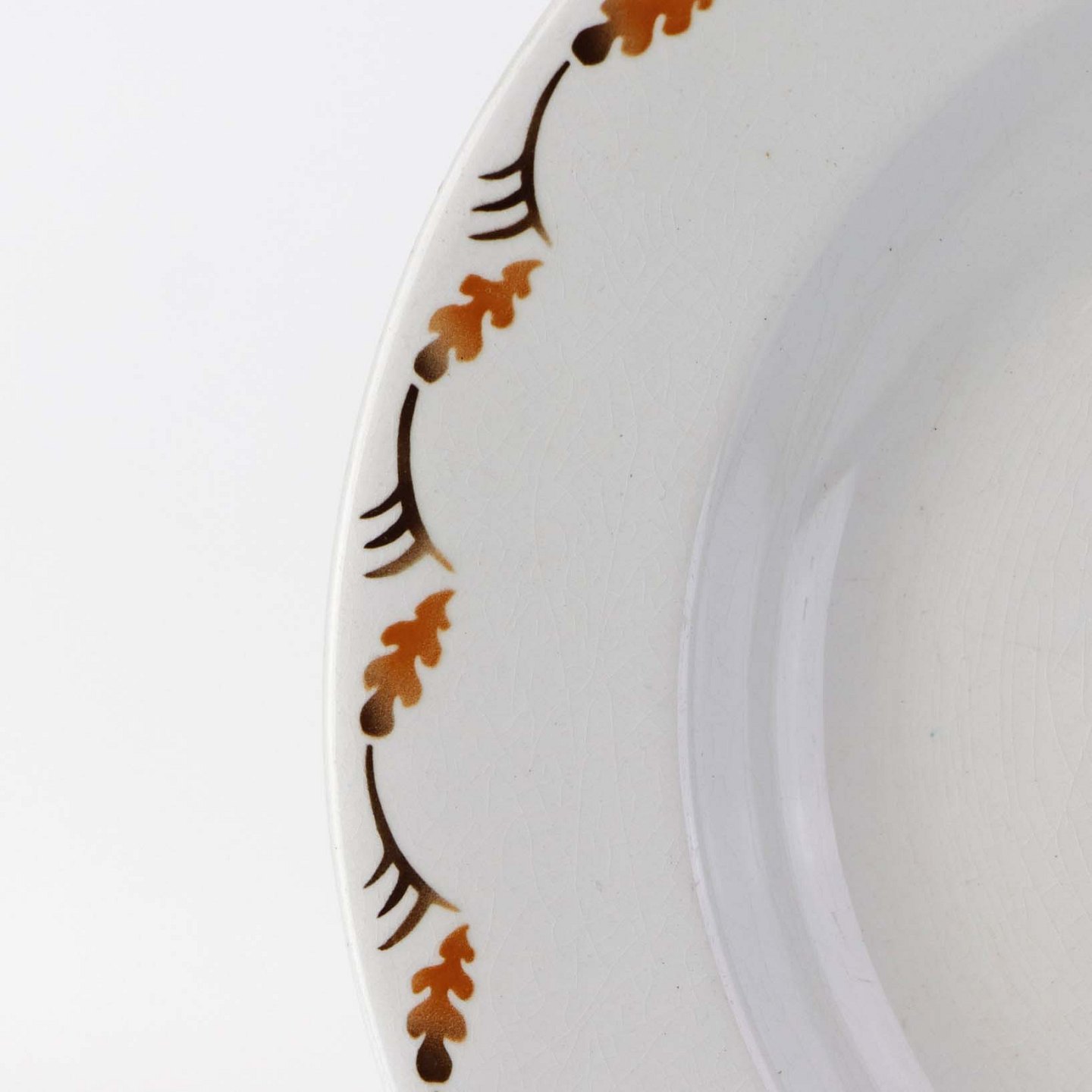 Dyb suppetallerken i fajance fra Hjortestellet Convolvolus, som blev fremstillet i perioden 1930-1940Formgiver Nils Thorsson