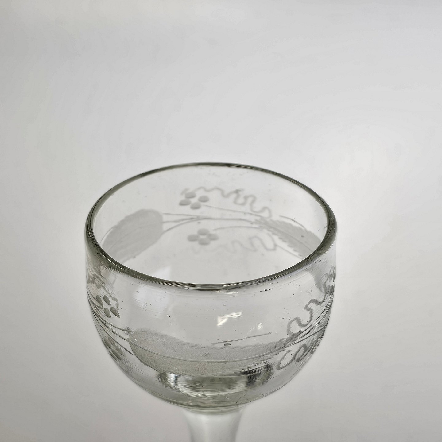 Håndblæst vinglas med spidsbladet løvslibning Producent ukendt