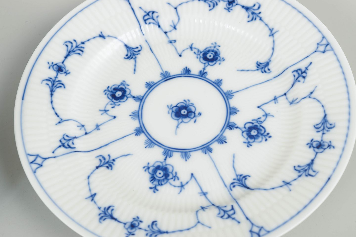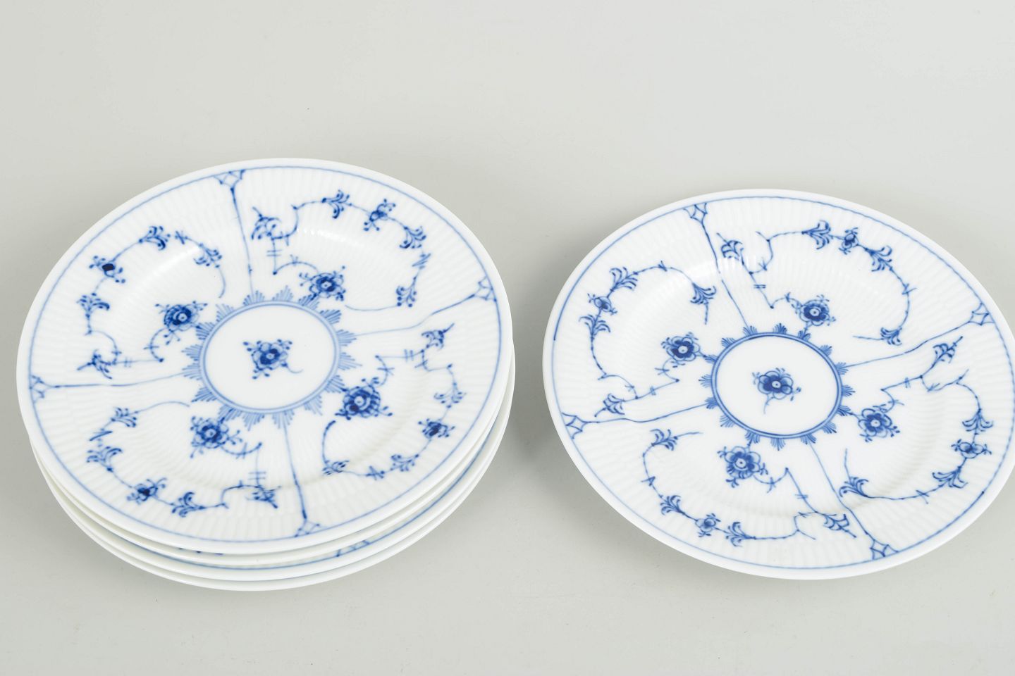 Royal Copenhagen, Blue Fluted Plain set of 5 cake plates.Set of five round porcelain cake plates decorated in underglaze blue with the classic Blue Fluted Plain pattern. Model 1/180.
