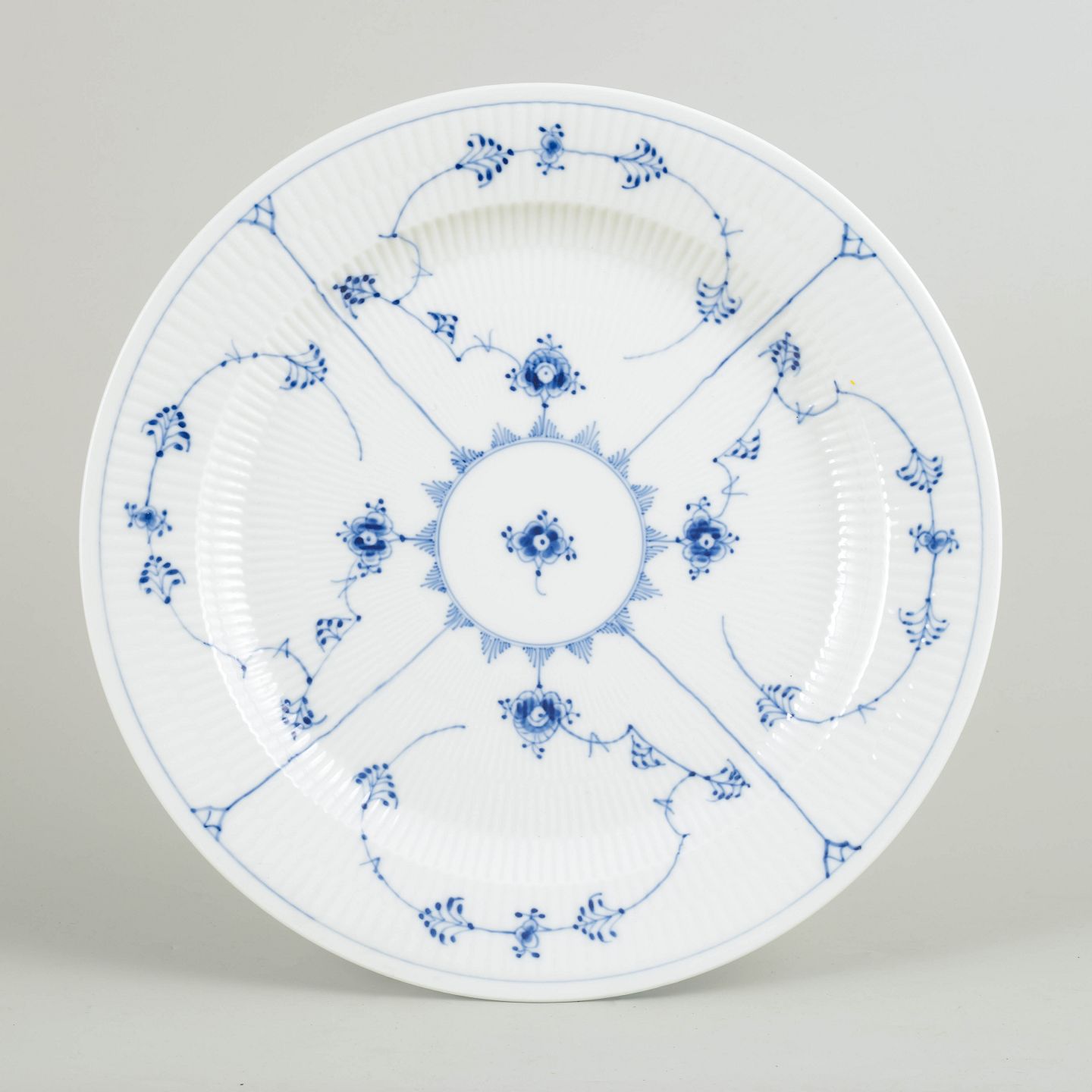 Royal Copenhagen, Blue Fluted Plain serving platter.Round porcelain serving platter decorated in underglaze blue with the classic Blue Fluted Plain pattern. Model 1/107.