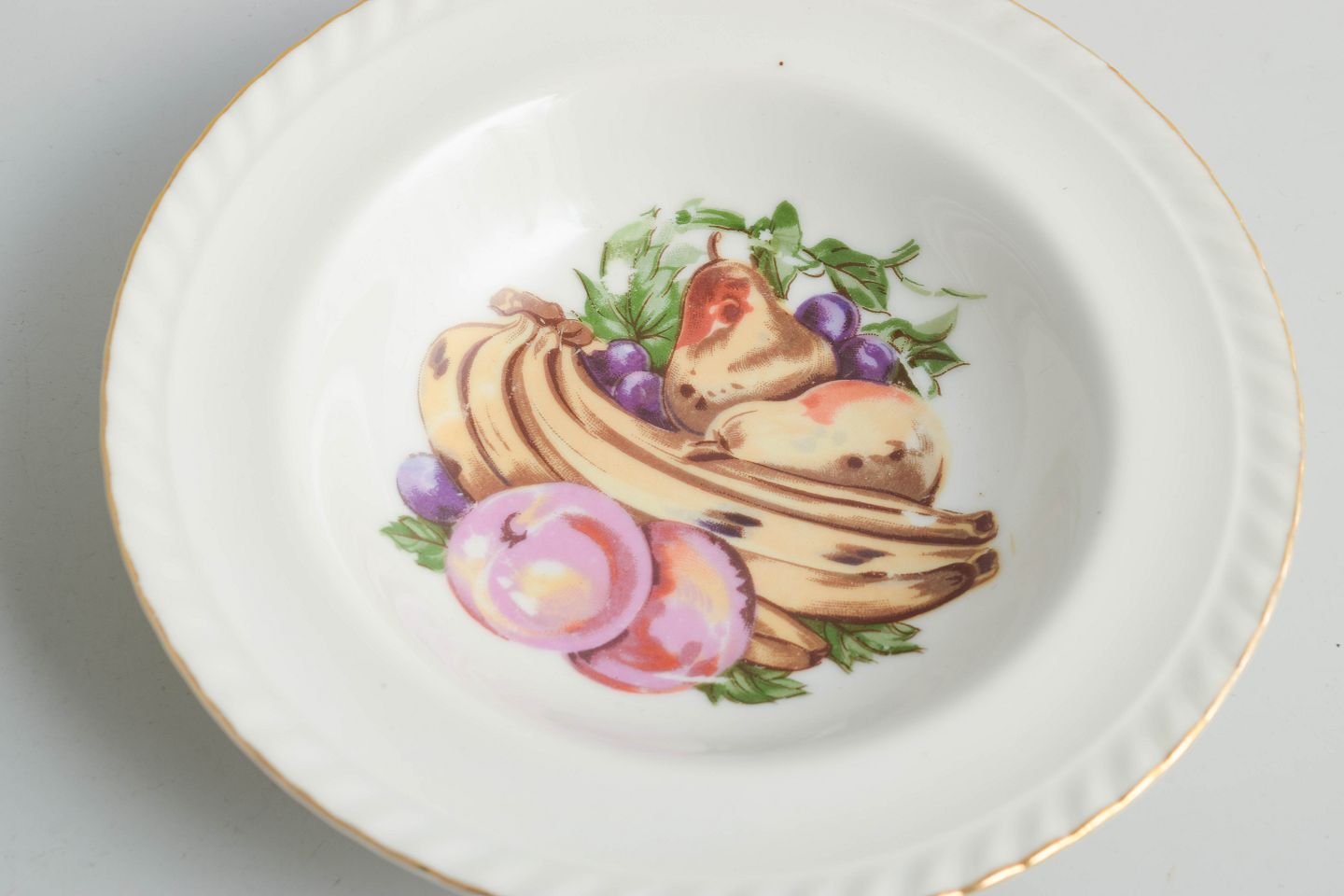 European tableware porcelain from the 1930s often combines traditional forms with decorative motifs such as fruit and gilding. The period reflects a balance between established craftsmanship and contemporary stylistic influences, resulting in both functional and decorative pieces for everyday use and formal dining.
