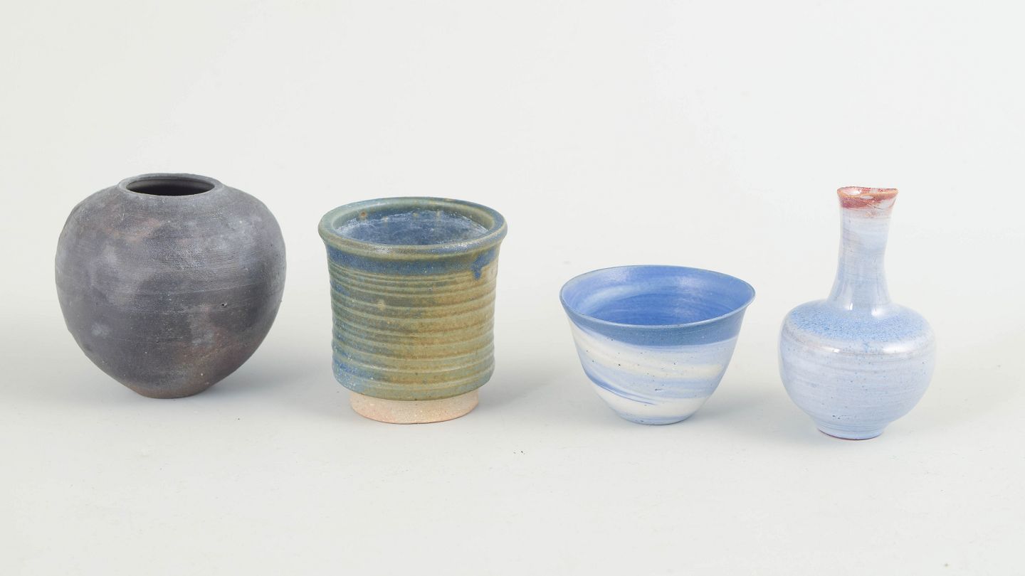 Unique miniature vases and bowls, European studio potters.Collection of hand-thrown miniature vases and small bowls in stoneware, featuring individual forms and varied glazes. Each piece is unique and reflects the character of its maker and workshop.