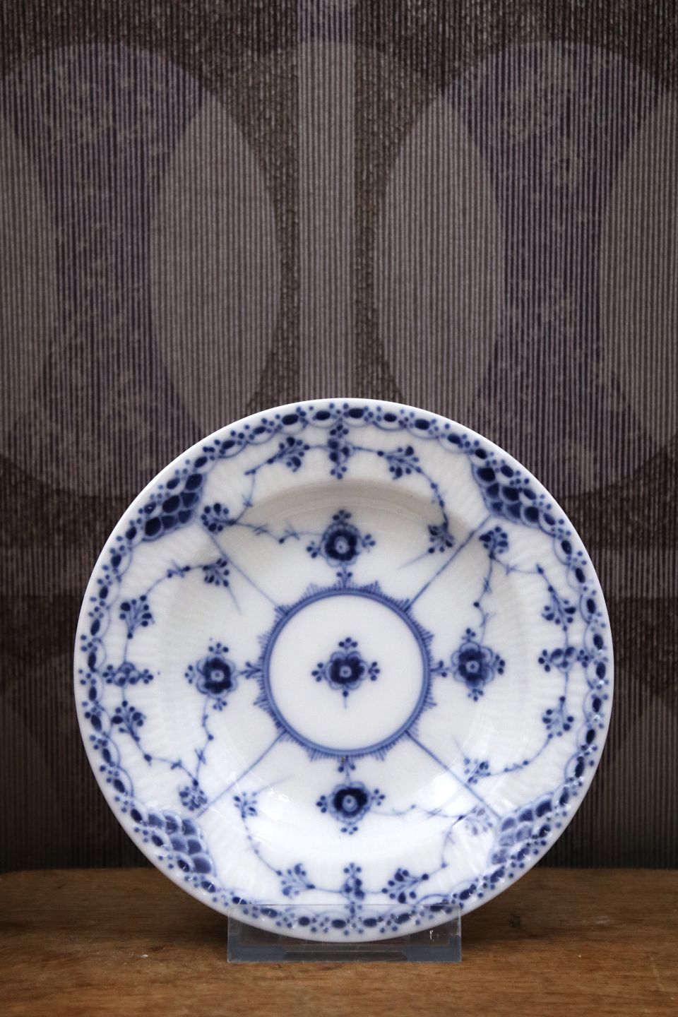 Royal Copenhagen Blue Fluted Half Lace, small deep plate.Dia.: 14cm. Decoration number: 1/569. 1.sort. stamped 1898-1923.