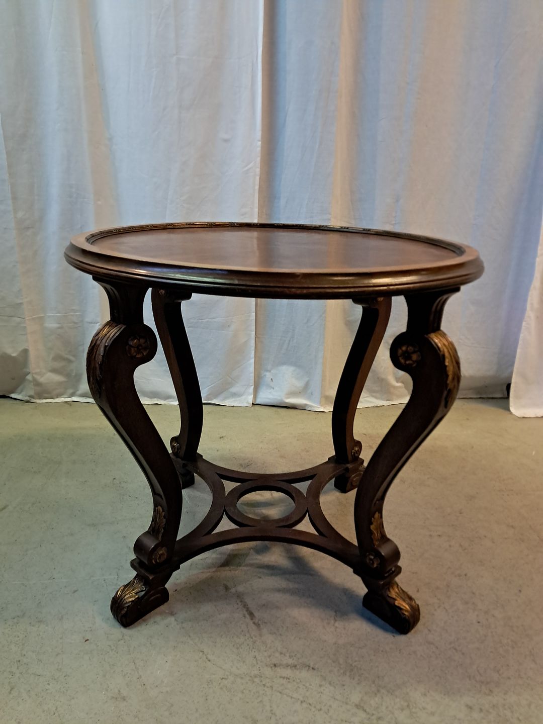 Rundt sofabord i fineret birketræ, fra 1950erne.Det har brugsspor.