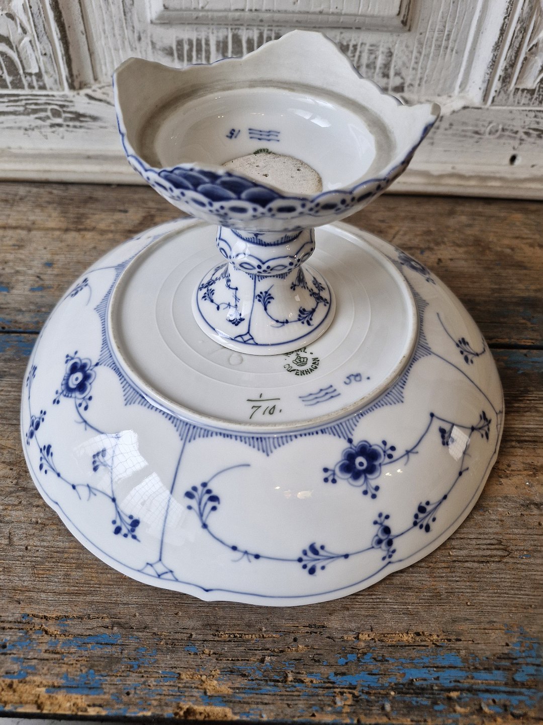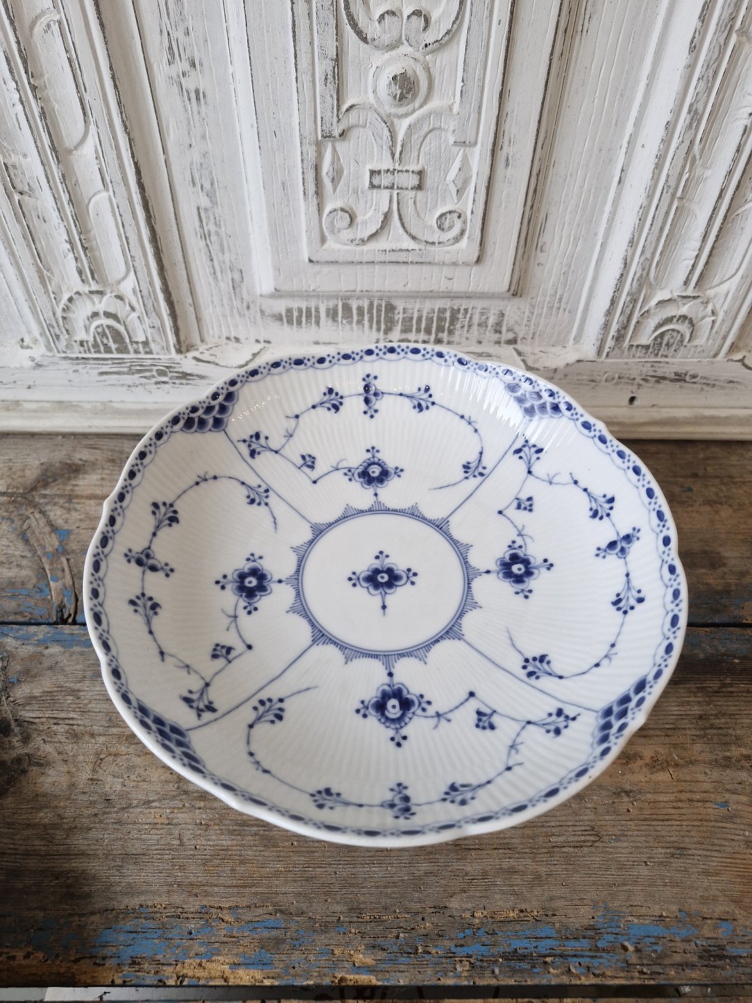 Royal Copenhagen Blue Fluted half-lace dish with wavy edgeNo. 710, Factory first