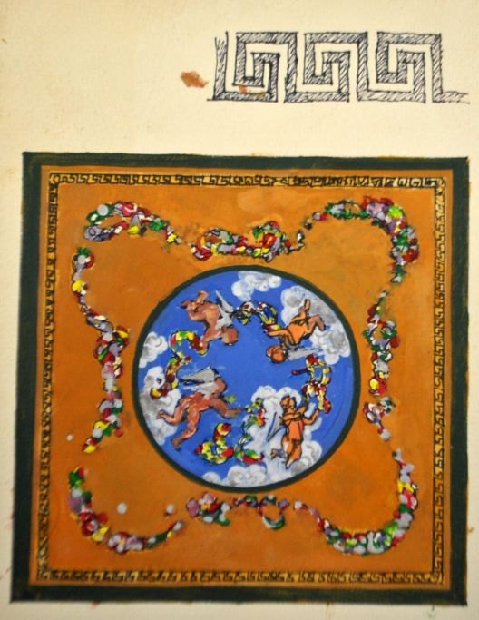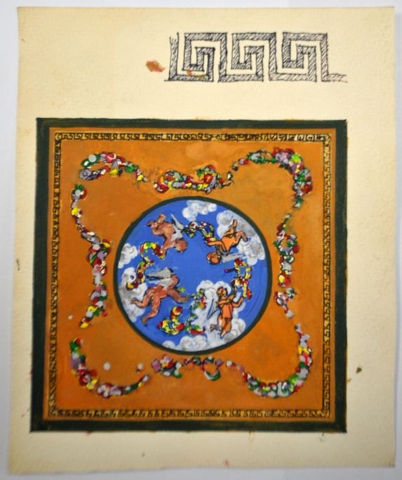 Thieme, Alexander Georgivitj (1953 - 2003) Russia/Denmark: Draft for ceiling, 1994. Collaboration with Piotr Reichet. Watercolor on paper. H: 22.5 cm. W: 18.5 cm.