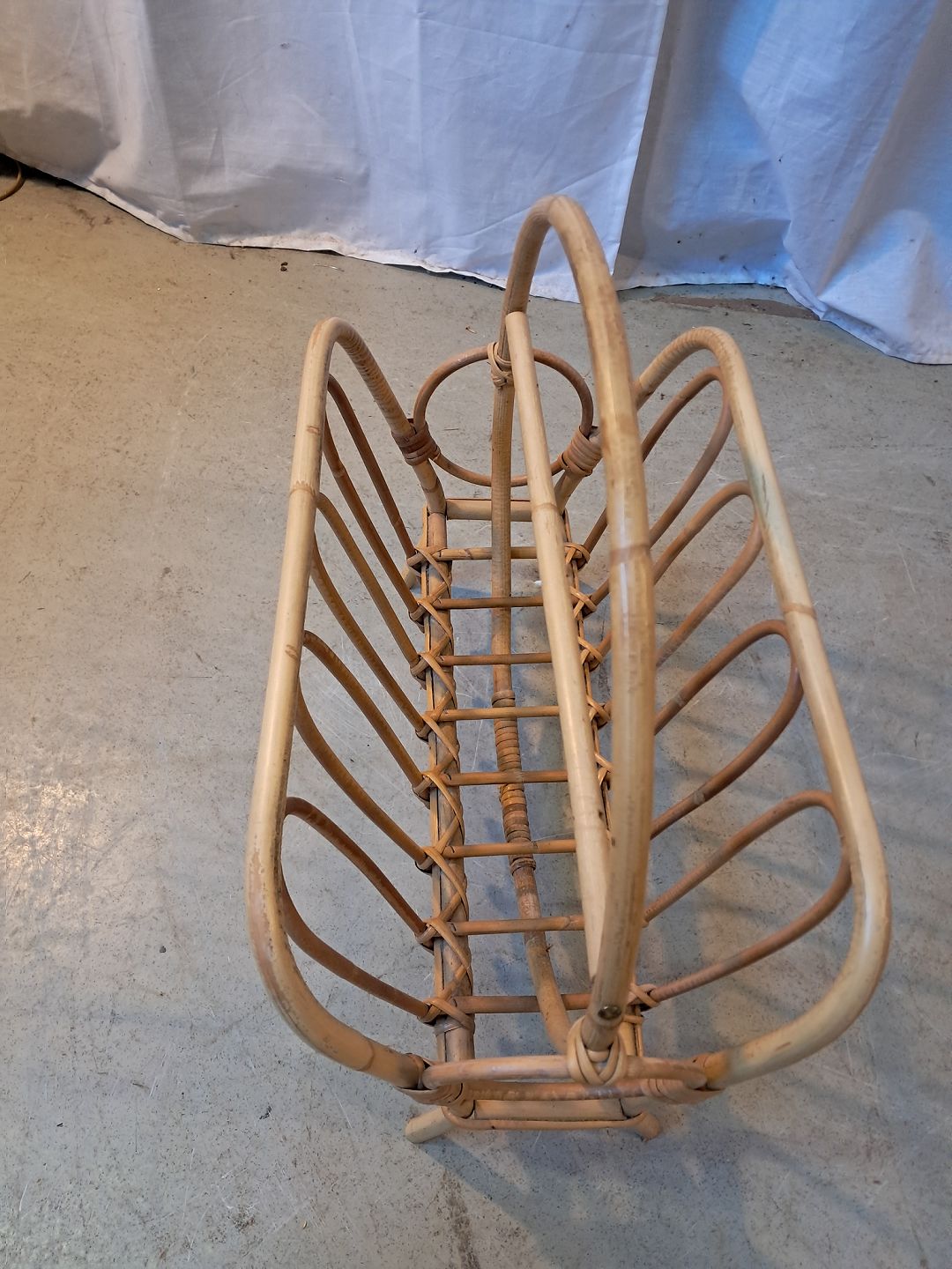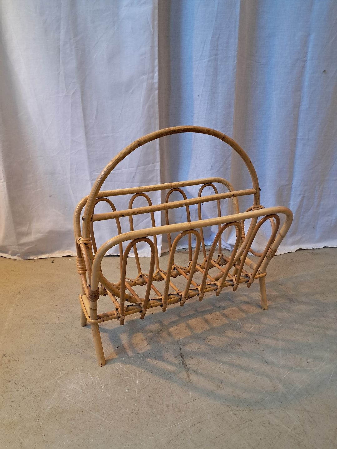 Avisholder i bambus fra 1980erne.Den har brugsspor.