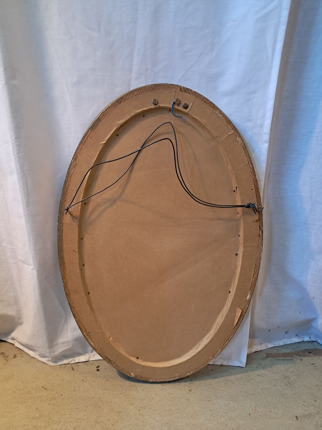 Guldmalet spejl fra 1950erne.Det har brugsspor og defekter på kanten.